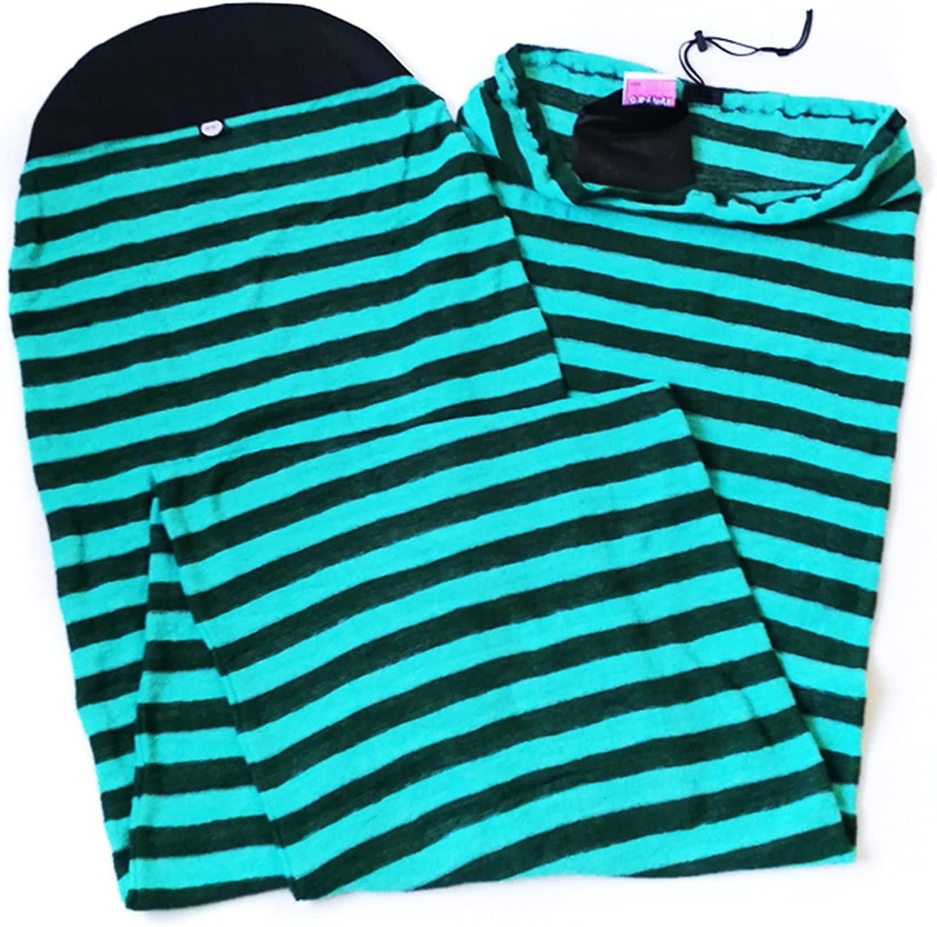 Feature:--Made of good quality polyester, knitted fabric--Fits one board with good elasticity--Compact fitted design with eye-catching striped pattern--Protect your board from scratches and damage--Suitable for surfboard, SUP, other long boards and short boards--Width: 20" for 6',6'6"and 7', can fit 20"-24" width boards; 24" for 9'6", can fit 24"-28" width boardsDetails:- Keeps your board safe from sun damage and minor dings, bumps and general wear and tear.- Protect your board from scratches, also can be used as board storage bag when not use.- Suitable for everyday use or travel expeditions.- Lightweight and stretch heavy-duty acrylic knit terry- 600D reinforced nose protector- Adjustable drawstring closure- Internal pocket- Range of color optionsPackage:Surfboard Sock X 1