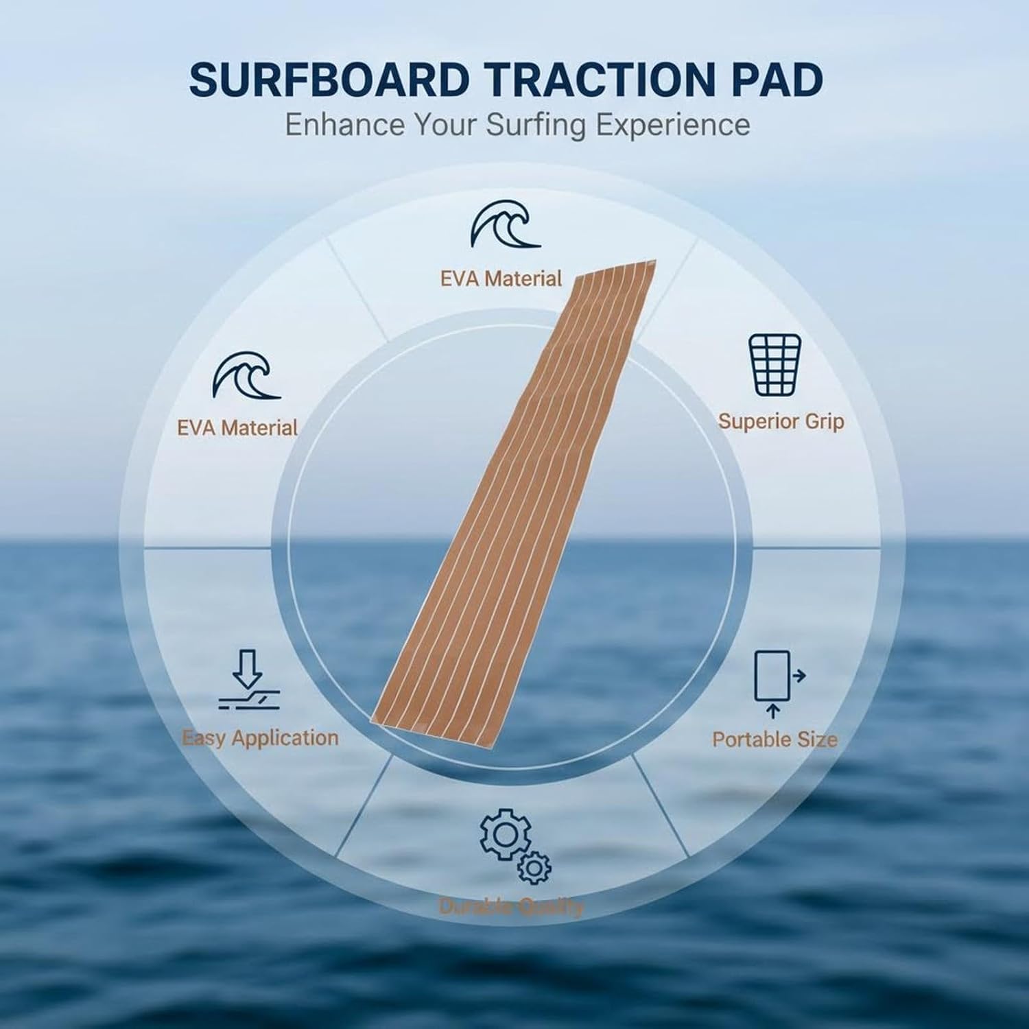 Item Type: Surfboard Traction PadMaterial: EVA, GlueColor: Brown, White StraightProduct Expansion Size: Approx. 240 x 45 x 0.6cm / 94.5 x 17.7 x 0.2inStorage Size: Approx. 46 x 9 x 9cm / 18.1 x 3.5 x 3.5in (Handmade Measurement, Allowing 1-2cm Error)Package List:1 x Surfboard Traction Pad