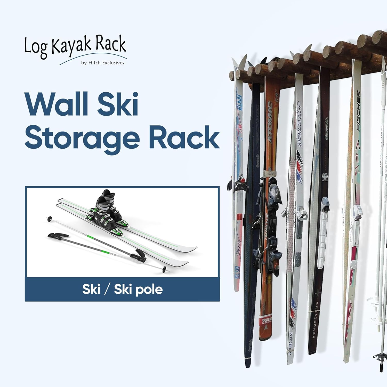 The Indoor or Outdoor Ski and Ski Pole Rack are built to hold 14 pairs of skis. This rack will also hold the ski poles as well. The rack can be screwed with supplied Torx deck screws to any flat surface indoors or outdoors. Torx bit for screws is supplied as well. This rack is 100% constructed of Northern White Cedar. It not only cares for and organizes your Skis and poles, it can be matched to its surroundings being log construction. With finishing options you can match dock, house, etc... or let it turn silver/gray with no finish, or you can use your own finish if so desired. We have worked with logs for over 23 years crafting log homes, furniture, ski racks, and kayak racks. Each joint is glued and screwed for longevity. We use glued 2" mortise-and-tenon joinery wherever possible. Hand made and finished by Log Artisans in Northern Wisconsin.