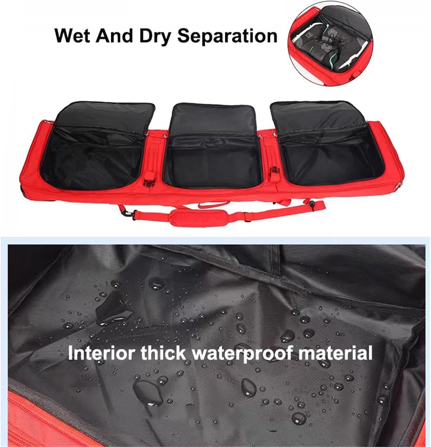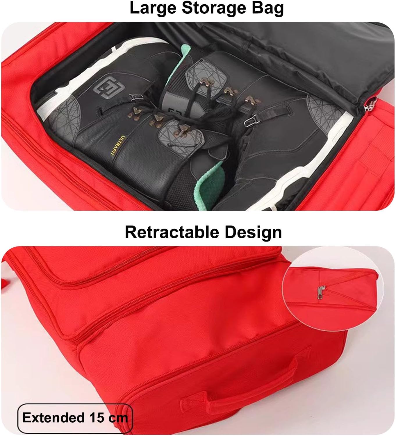 Pack The Boards and Hit the Snow!The Expandable Double Snowboard Bag lets you travel with ease and flexibility.Whether you go snowboarding with a friend or travel solo, Our Rolling Expandable Snowboard Bag will let you pack all your snowboard gear in ONE convenient package. This snowboard bag is constructed with the traveling snowboarder in mind! Our team knows the difficulty of traveling through the airports or to the mountain with multiple bags and winter sports gear. The Our Snowboard Bag is designed and crafted to solve that problem. Featuring 3 large pockets, this spacious and waterproof luggage works as a single or double snowboard or ski bag.Product name: Double Rolling Ski BagFabric: 600D water-resistant polyester + PE liningWheels:Silent tank wheelsColor: Blue, red, beige, blackSize:(62.9~68.9)62.9×13.8×5.9 inch/(160~175cm)×35×15cmFolded size: 50*39*18cmGross weight: about 2.5kgPackaging weight: about 3kgIncludes:1× Double Rolling Ski Bagnote:1. Due to the use of different shooting tools, slight color errors may occur. This is not a quality issue. Please refer to the actual product2. Because it is manual measurement, the error is 1-3cm, please refer to the actual product, please understand