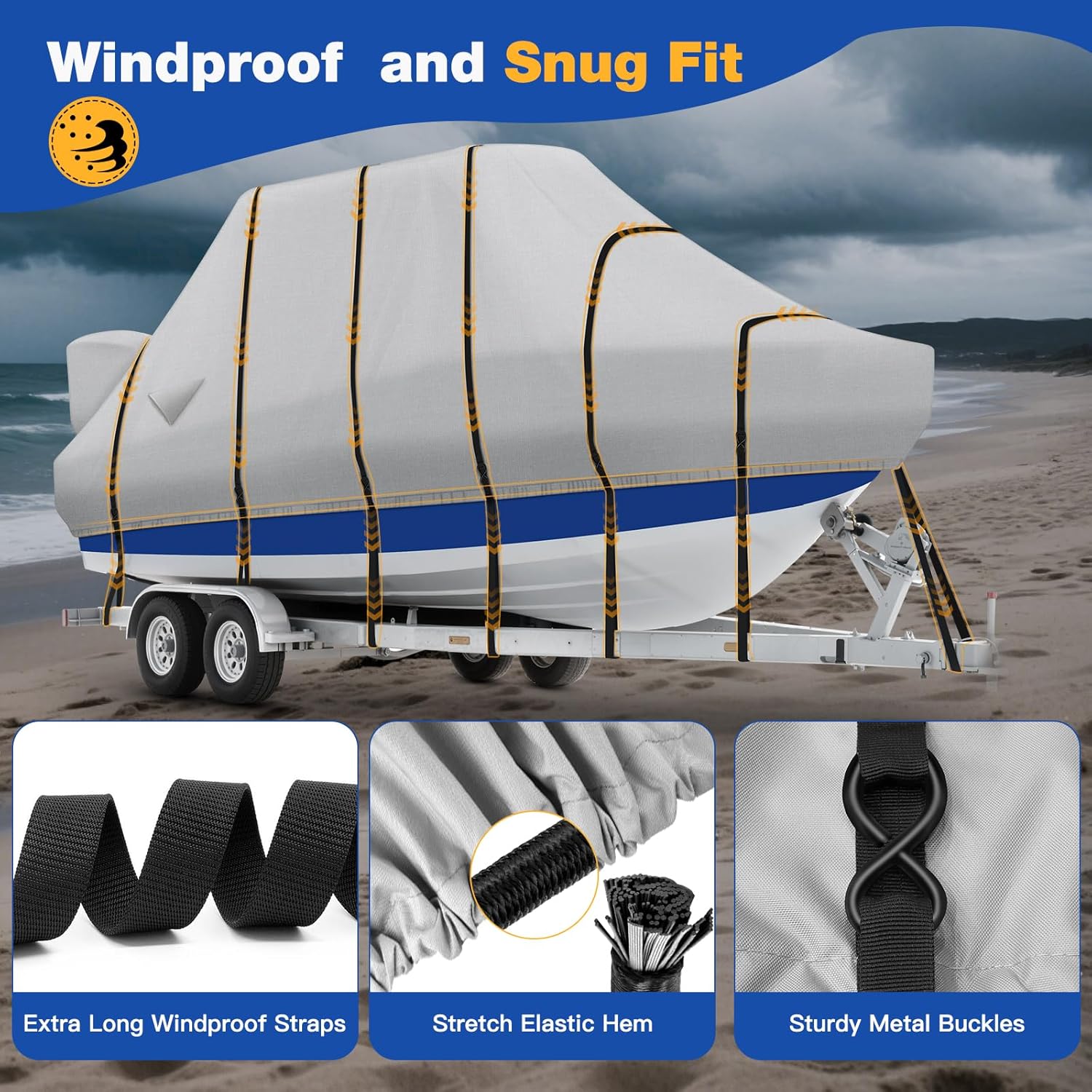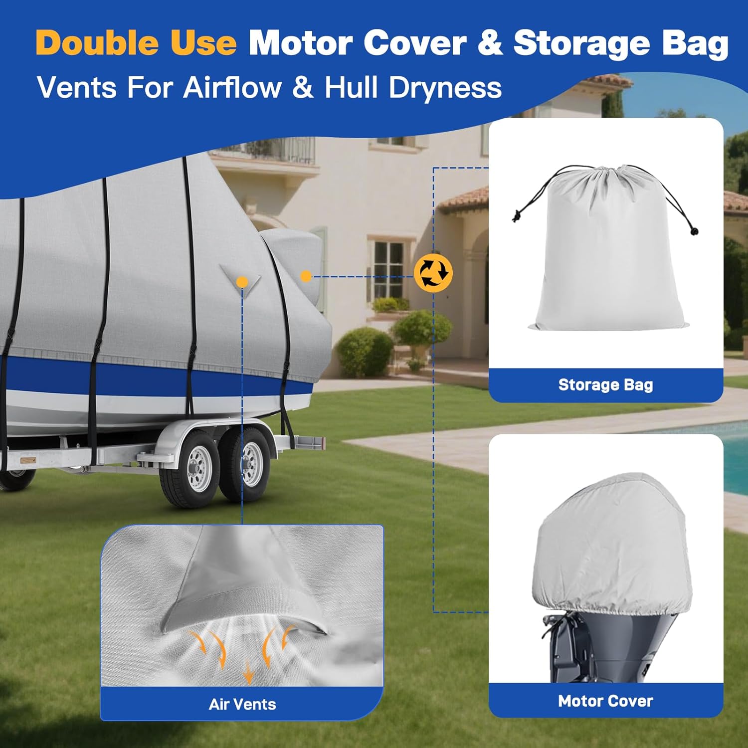 | Coverage | Full exterior coverage for boats (24'-26' length, up to 108" width) including t-top roof |