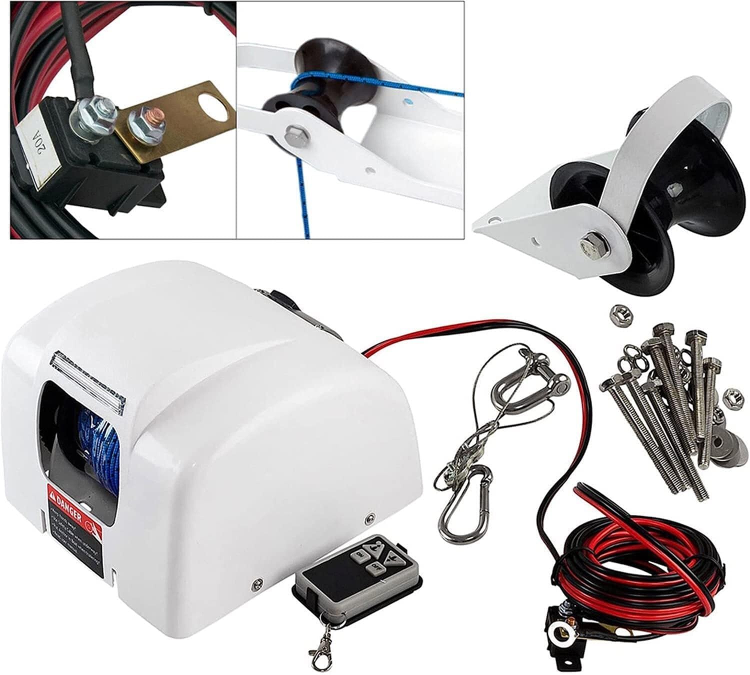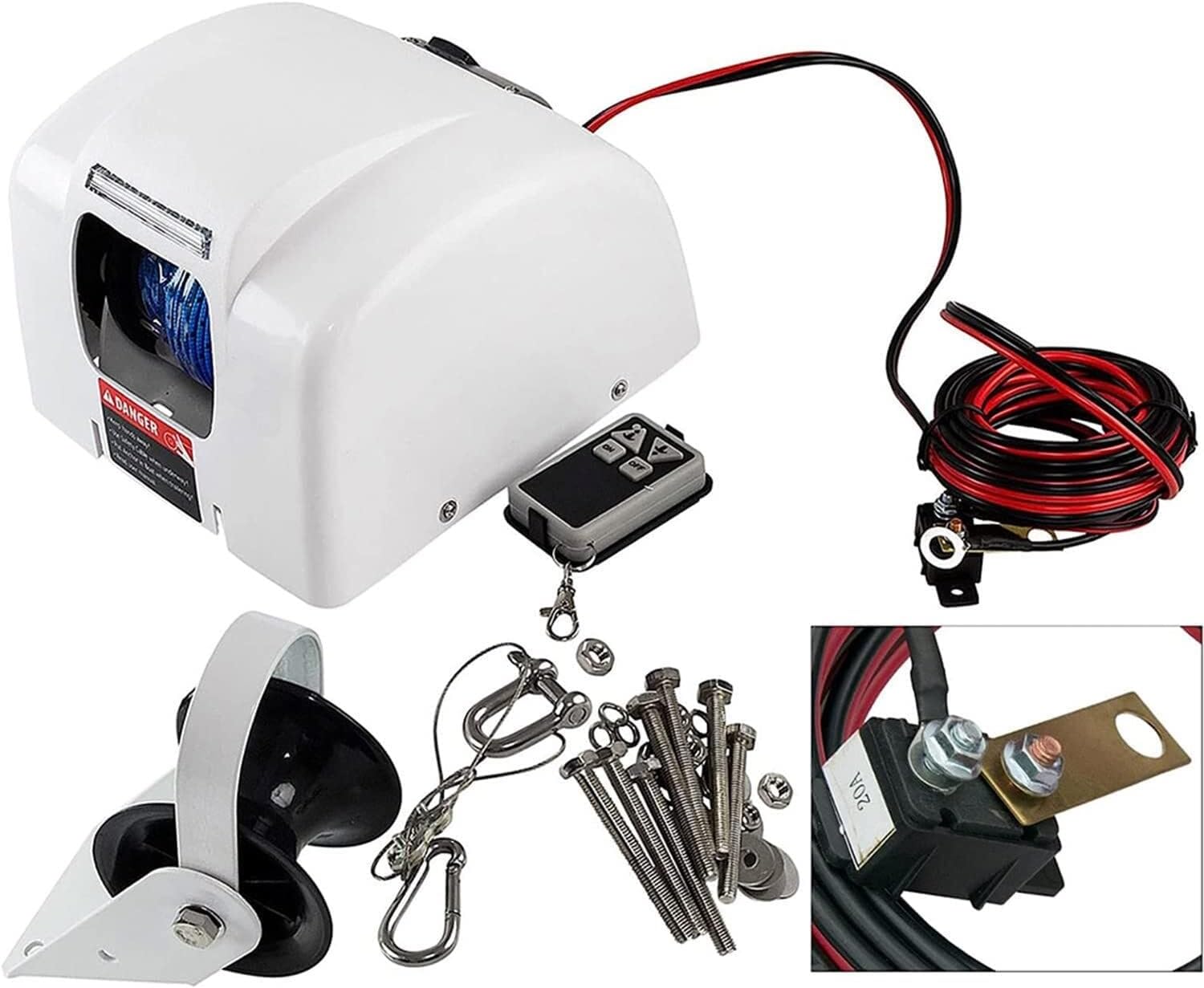This Electric Anchor Winch could be used in Salt Water.It include additional corrosion protection, added UV inhibitors and stainless steel hardware.You can use it in fresh water too.The anchor winch has the touch of a button (UP and down), the anchor is powered UP and down smoothly and quietly, while you go about your boating activity. Besides the standard anchor winch which can be controlled by the UP or DOWN buttons on the switch panel on the anchor winch cover, it will come with a wireless remote. A second switch can be added at the boat's helm or wherever it is most convenient.Electric Winch and Integrated Roller Anchor roller can be positioned close to winch or spaced away.Position is determined by the length of the anchor shank.Press the button to release the anchor and let the anchor drop quickly, No rope back-lash.Specifications: Item Type:Electric Anchor WinchMaximum Anchor Capacity: 20-30 LbsTypical Boat Length: up to 24Volt: 12VAmp Draw @ 12V: 8-10 AmpsSpeed up: 70 ft/min Speed down: Frees FallWinch Dimensions (LxWxH): 10.1" x 8.3" x 6.5"Davit Dimensions (LxWxH): 6 x 3.5 x 5Switch Control on Anchor: Power UP/Frees fall DOWNpackage include: 1× anchor winch1× remote control switch (Battery No:LR27A 12V L828,not include battery)1× 10-guage Marine-grade ( Tin plated ) wire1× Assembly hardware and instructions