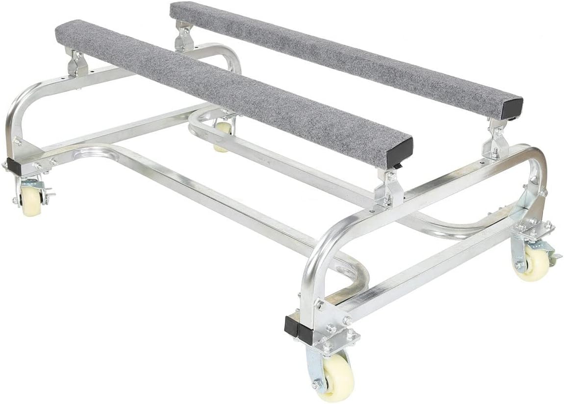 Item OfferedPackage List: 1 X Boat Dolly with HardwareMaterialMetalPart NumberGNT56214646ColorSilverProduct Dimension34" W X 48" L X 19" HSpecifictionMaximum 1,000 Lb. CapacityAdjustable 46" X 4" X 2" Bunks Rotate to Support Pwc HullWeight66lbsWeight Capacity1,000lbsInstallation InstructionsYesMaximum Capacity1,000 LbFeatureDesigned for Moving Small Boats or Jet SkisHas a Dual Break System and Can Move up to 1000lbs. on Any Hard Surfacefor Vessel Support,the Dolly Has 2 Carpeted Bunks That Tilts From 12",16",or 20"Assembly Required (Hardware&Manual Included)Built to Strict Quality Control Standards