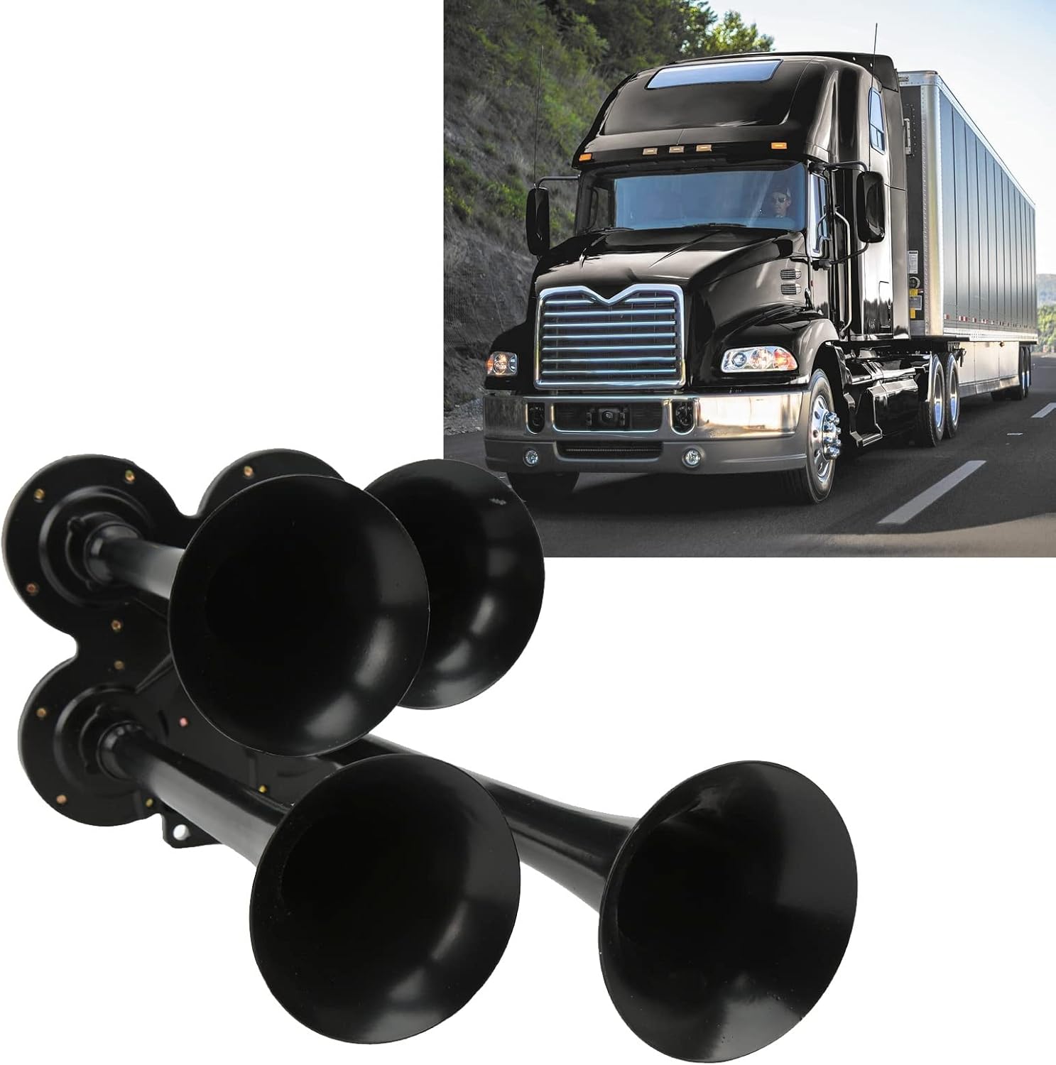 Item Type: 4 Trumpets Air HornMaterial: Zinc AlloyPower: 30WCurrent: 10AOperating Voltage: 12-24VWorking Pressure: 0.8-0.9MPAOperating Frequency: 500-800HZFitment: Suitable for vehicles with air pump sourcePackage List:1 x Horn1 x Pack of Accessory (10PCs)
