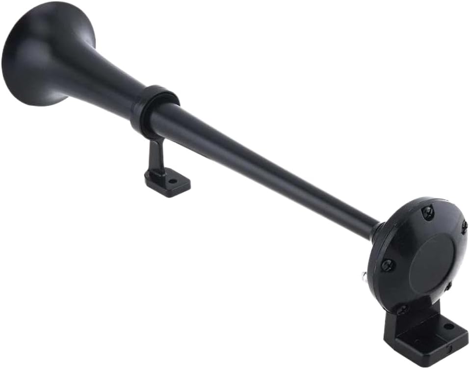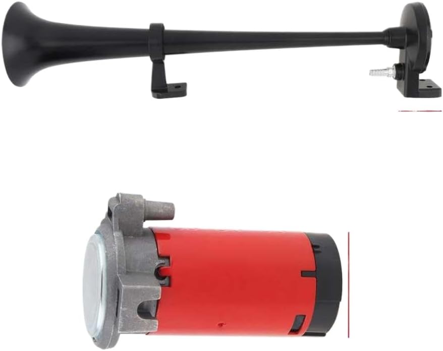 17 Inch 12V 150dB Super Loud Single Trumpet Air Operated Horn with Horn Compressor Fit for / Boat / Train / Lorry This 17 inch air-operated horn produces a 150dB sound output, designed for use with vehicles and marine applications.The single trumpet design is powered by a 12V system and includes an integrated horn compressor for.Suitable for installation on boats, trains, lorries, and other heavy-duty vehicles requiring a powerful audible.The system operates on compressed air and delivers a strong, clear tone under various environmental conditions.Components are built to support consistent performance in demanding usage scenarios.