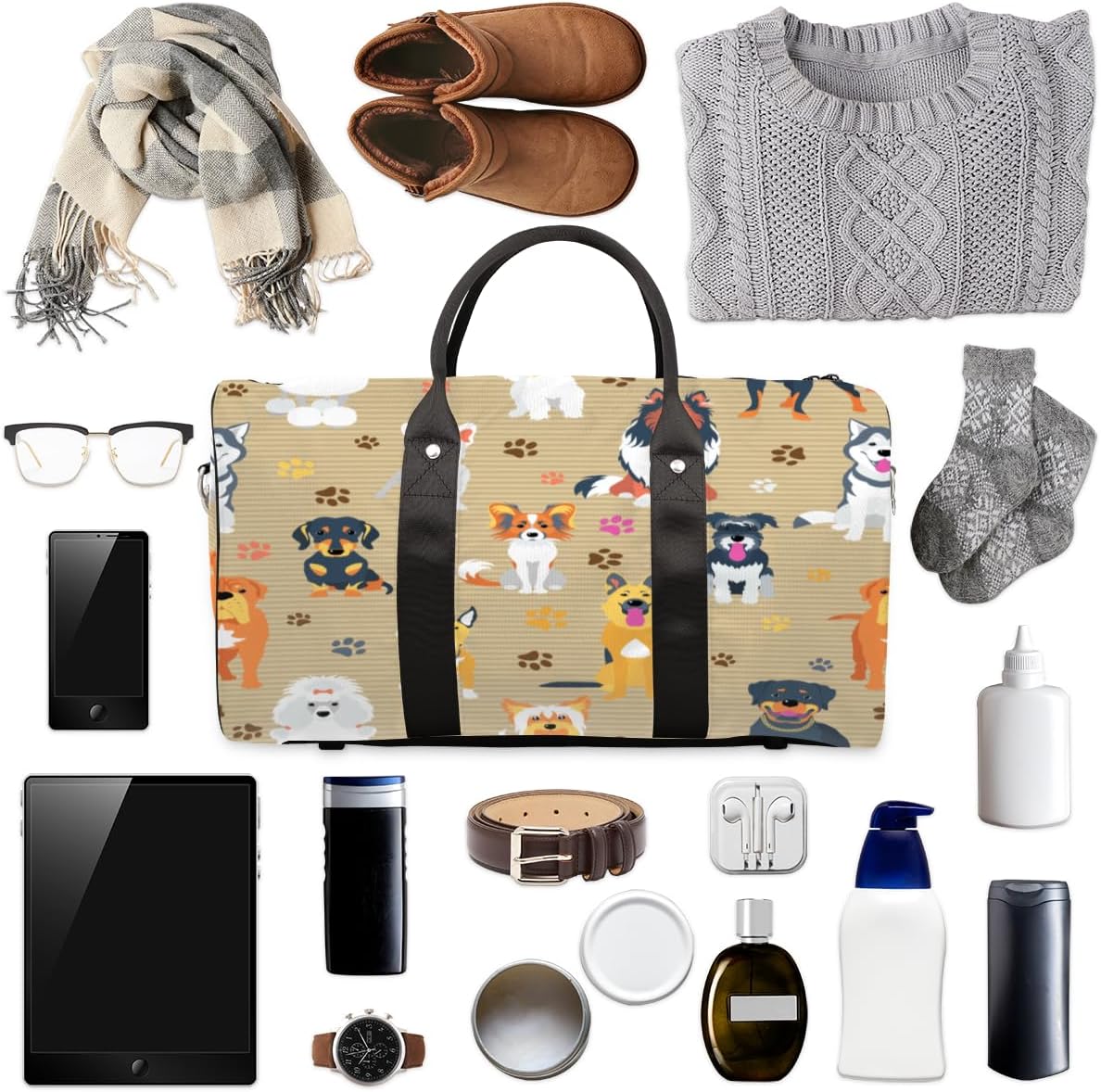 Large capacity: Womens weekend duffel bag measures 17.4 x 8.3 x 9.5 inches (approximately 44 x 21 x 24 cm), meeting most airline carry-on requirements. Despite its compact size, the spacious main compartment easily accommodates gym clothes, sports shoes, and overnight essentials. Three built-in pockets keep your phone, passport, and snacks neatly organized and within easy reach.Lightweight Waterproof: Lightweight duffel bags for traveling is crafted from premium waterproof composite twill fabric, offering a lightweight yet robust construction. Its exceptional waterproofing ensures contents remain dry, complemented by smooth-running heavy-duty metal zips for enduring reliability.Foldable Storage: When not in use, this foldable duffel bag for travel can be folded and stored in drawers, storage cabinets, or suitcases. It serves as an ideal backup bag for handling last-minute trips, extra shopping, or additional storage needs.Versatile Carrying Options: Duffel bags for traveling has comfortable handles and a detachable, adjustable shoulder strap, letting you choose your carry style freely. Its dedicated luggage strap securely attaches to your suitcase’s telescopic handle, freeing your hands and easing airport transfers and daily commutes.Versatile: This multifunctional sports duffel bags effortlessly adapts to diverse scenarios—be it gym sessions, travel, overnight stays, beach outings, or cabin luggage. Whether for daily workouts, weekend getaways, or outdoor adventures, it proves a dependable companion. Thoughtful Gift: Standing out from ordinary designs, this duffel bag women offers distinctive style. Beyond being a practical everyday accessory, it makes an excellent present for friends, family, colleagues or team members. Whether for birthdays, holidays or team events, it's a much-appreciated gesture.
