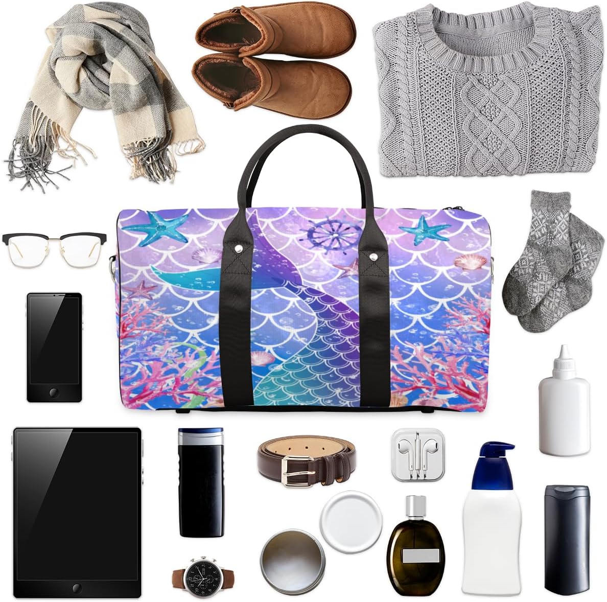 Large capacity: Womens weekend duffel bag measures 17.4 x 8.3 x 9.5 inches (approximately 44 x 21 x 24 cm), meeting most airline carry-on requirements. Despite its compact size, the spacious main compartment easily accommodates gym clothes, sports shoes, and overnight essentials. Three built-in pockets keep your phone, passport, and snacks neatly organized and within easy reach.Lightweight Waterproof: Lightweight duffel bags for traveling is crafted from premium waterproof composite twill fabric, offering a lightweight yet robust construction. Its exceptional waterproofing ensures contents remain dry, complemented by smooth-running heavy-duty metal zips for enduring reliability.Foldable Storage: When not in use, this foldable duffel bag for travel can be folded and stored in drawers, storage cabinets, or suitcases. It serves as an ideal backup bag for handling last-minute trips, extra shopping, or additional storage needs.Versatile Carrying Options: Duffel bags for traveling has comfortable handles and a detachable, adjustable shoulder strap, letting you choose your carry style freely. Its dedicated luggage strap securely attaches to your suitcase’s telescopic handle, freeing your hands and easing airport transfers and daily commutes.Versatile: This multifunctional sports duffel bags effortlessly adapts to diverse scenarios—be it gym sessions, travel, overnight stays, beach outings, or cabin luggage. Whether for daily workouts, weekend getaways, or outdoor adventures, it proves a dependable companion. Thoughtful Gift: Standing out from ordinary designs, this duffel bag women offers distinctive style. Beyond being a practical everyday accessory, it makes an excellent present for friends, family, colleagues or team members. Whether for birthdays, holidays or team events, it's a much-appreciated gesture.