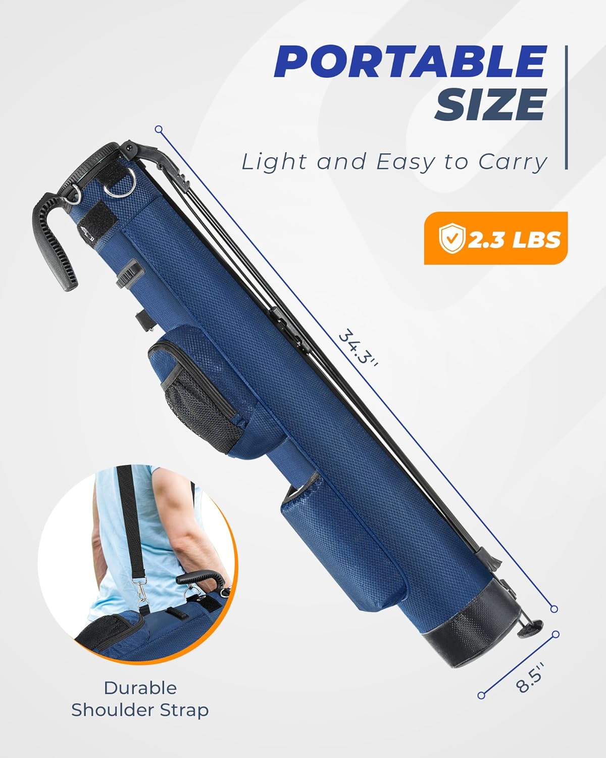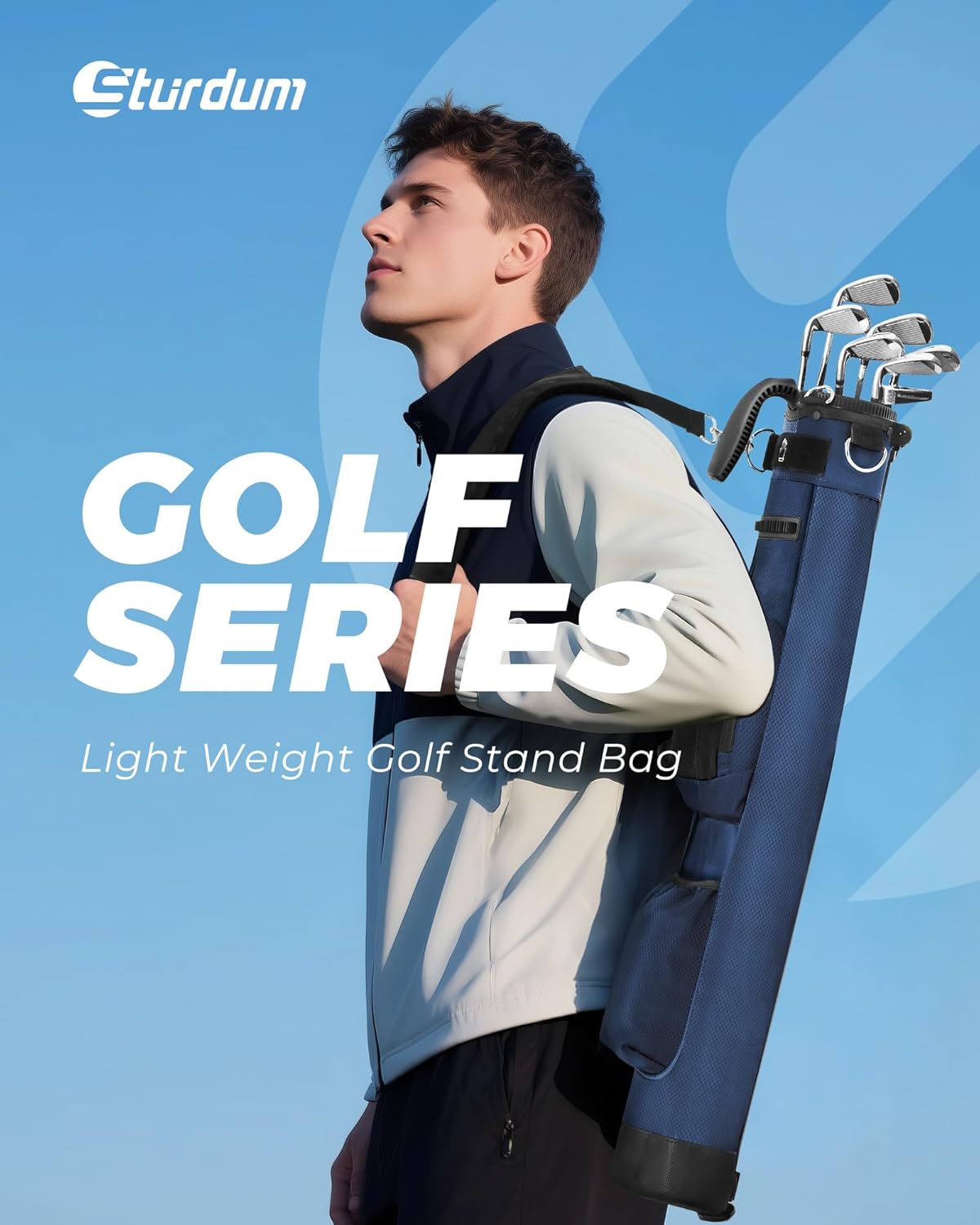 Why choose the Sturdum golf bag for driving range? Elevate your golf experience with the Sturdum Lightweight Golf Stand Bag, a compact yet durable companion designed for agility and convenience on the course. Weighing just 2.3 lbs, this bag combines rugged 1680D nylon construction with a reinforced base to withstand rocky terrain, wet grass, or crowded driving ranges - all while maintaining a sleek, portable profile. Stay refreshed during summer rounds or intense practice sessions with the insulated cooler pocket, engineered to fit standard 12-oz cans or 17-oz water bottles, keeping drinks icy for up to 4 hours. Its slim 34.3" frame slips effortlessly into car trunks or golf cart storage, offering space for 6-8 clubs - suitable for Par 3 courses, executive rounds, or as a backup bag for quick range sessions. The auto-deploy stand system ensures stability on any surface: retractable legs with rubberized feet grip slopes, gravel, and wet turf securely, while a one-touch mechanism eliminates wobbling or bending to adjust. Switch seamlessly between the adjustable padded shoulder strap (ideal for all-day comfort) and the top handle for quick lifts or hanging on carts, walls, or hooks. Designed for versatility, this bag includes mesh side pockets for balls, tees, and rangefinders, and folds flat in seconds for compact closet or garage storage. Whether you’re tackling a fast-paced executive course, refining your swing at the range, or gifting it to a golf-loving friend, the Sturdum Stand Bag delivers unmatched portability, durability, and course-ready convenience.