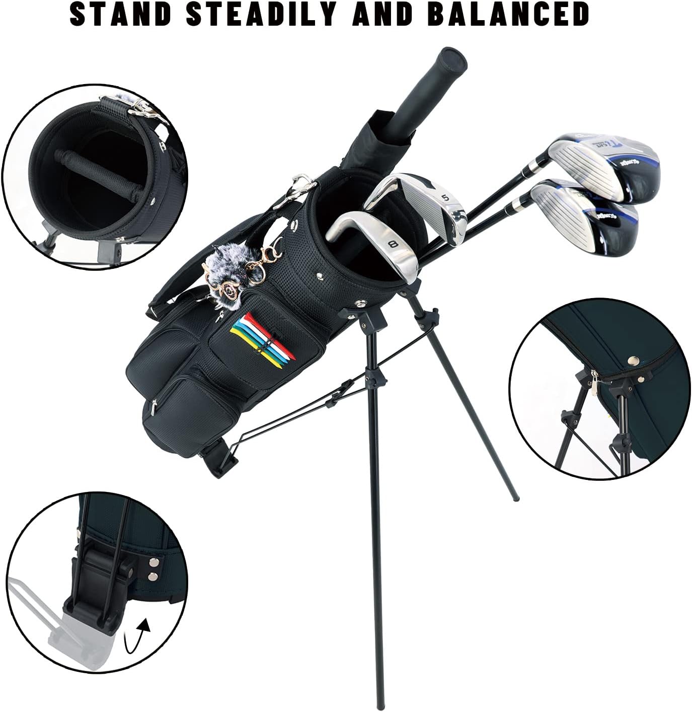【High-quality Material】- This cool golf bag made of the premium PU material and fixed by stainless solid rivets, designs a non-slip & anti-wear bottom which is more efficient and durable,Golf Stand Bag