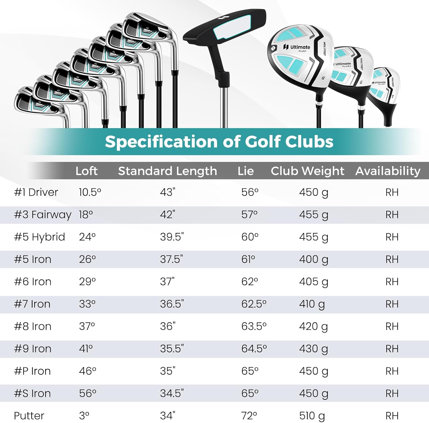 | Included Components | Driver, Fairway, Hybrid, #5-9 Irons, PW, SW, Putter, Golf Stand Bag, Rain Hood, 3 Head Cover |