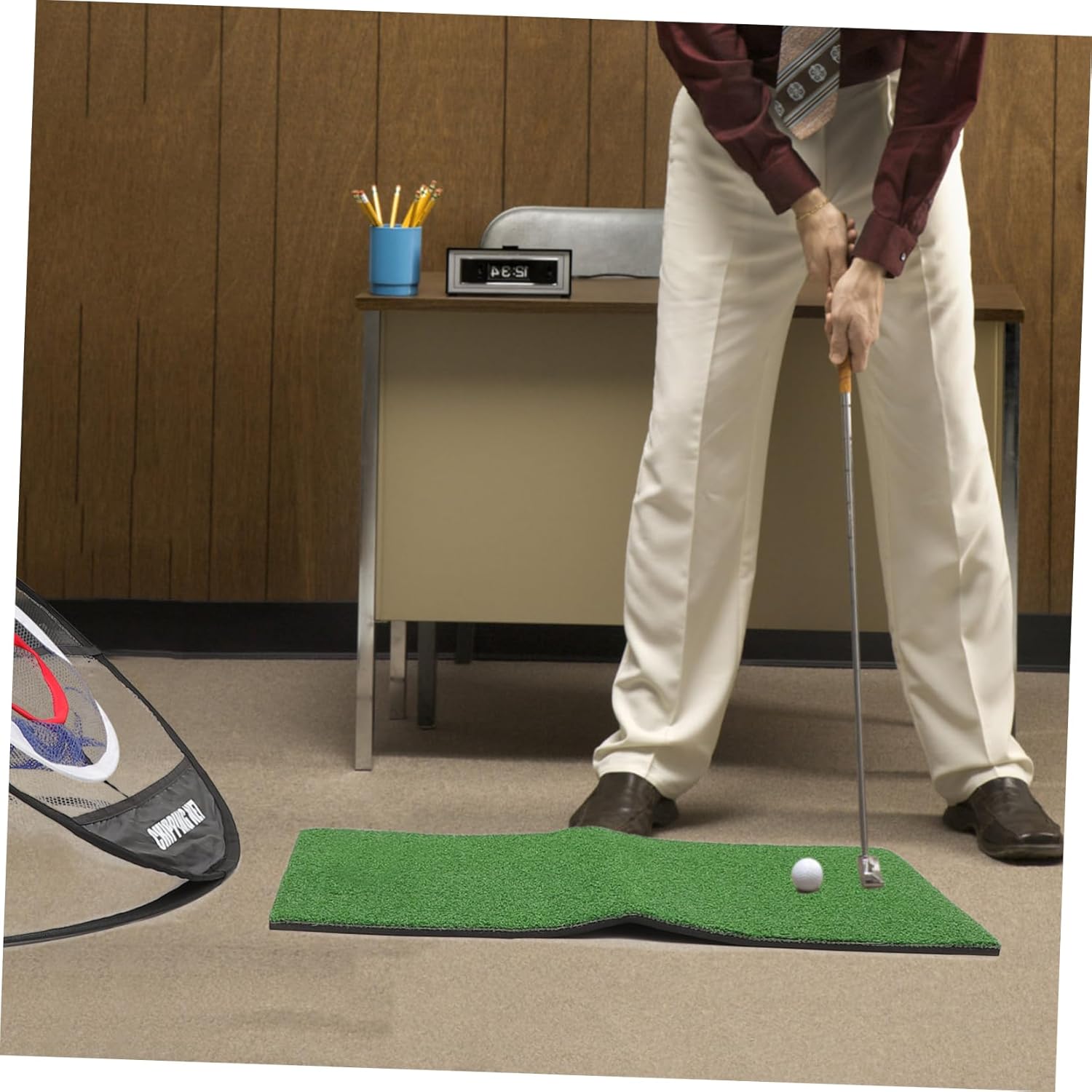 Package List 1 x set chipping net Features - Size: About 51 x 51 x 41 cm putting practice mat indoor. - Color: Black indoor chipping mat. - Material: Nylon home putting mat. - Help improve your short distance chipping accuracy. This is a must-have chipping net for golfers of all levels putting aid. - Features lightweight, foldable and portable, our net is suitable for indoor or outdoor play anywhere hitting mat. - Made of material for durable and long lasting use turf practice. - Sturdy frame making the net stable enough to absorb hits from several balls without flipping over alignment training net. - Set up a game or a friendly match using the net with your family, friends or colleagues chipping net.Goods Descriptiontraining chipping net With this pockets net, you can practice without worrying about disturbing your neighbors with missed shots.training mat Going to the driving range is and time-consuming.training turf Owning a net at home can greatly help cut down your training cost, saving you time and money