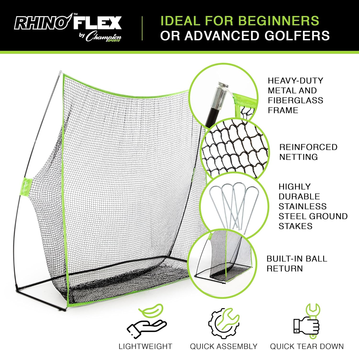 | Included Components | Champion Sports Rhino Flex Golf Net - 7' x 7' Practice Net |