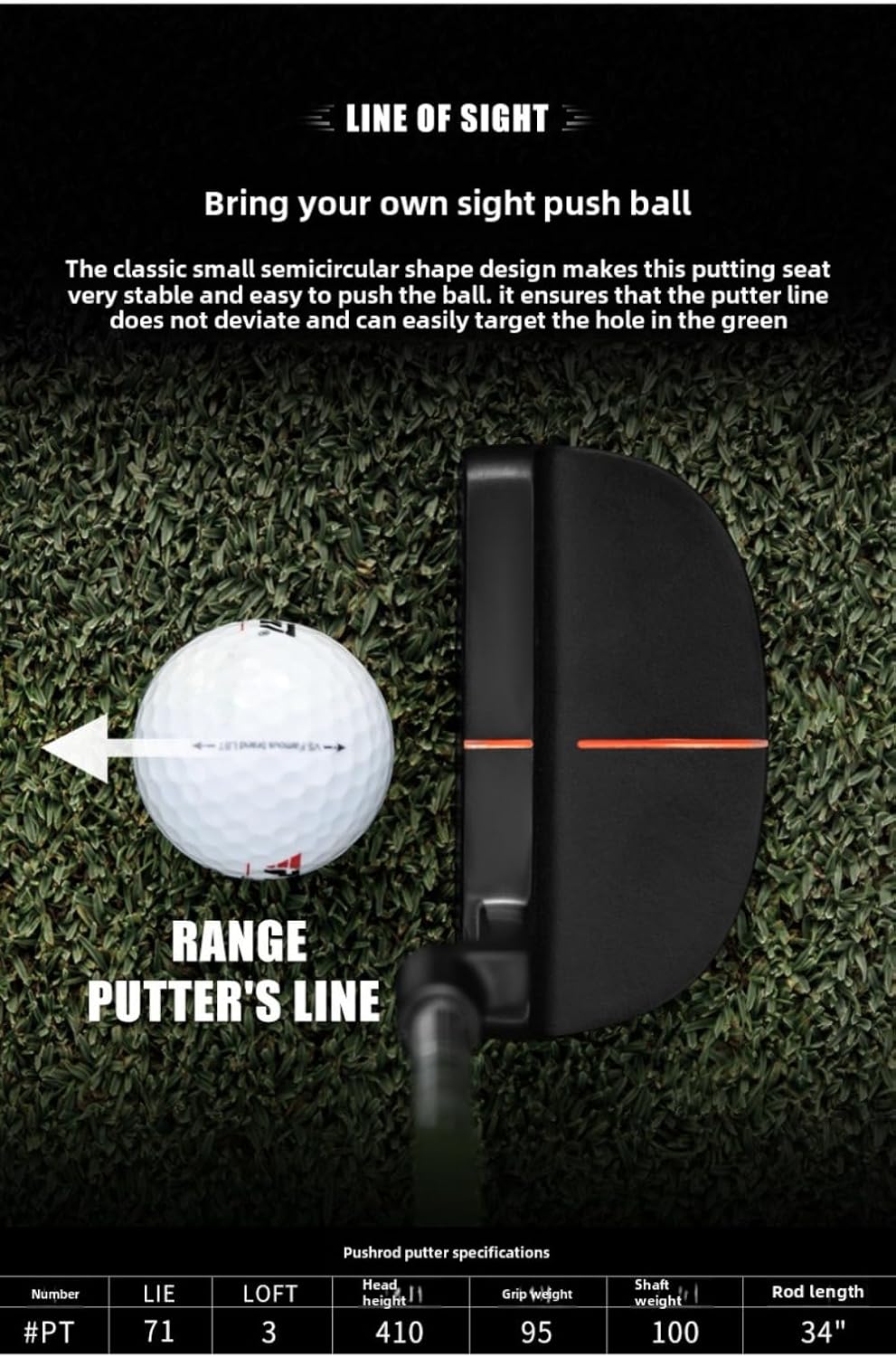 Applicable sport: Golf Product category: Golf Push Rod Color: Black Push Rod [with Golf Head Cover] Lie:71 Loft:3 degree golf putters Rod head material: stainless steel Rod body material: stainless steel 1.CNC BI-DIRECTIONAL MILLING PATTERN Whole 431 precision casting+two-way CNC milling pattern on the batting surface pushes the ball to roll forward better when hitting the ball 2.ASSISTED AIMING LINE DESIGN The classic small semi-circular shape of this putter makes it easy to putt with a firm seating point.Ensures that the line of the putt is not deflected and that the hole is easily targeted on the green 3.RIFLE STEEL SHAFT High vibration resistance and fault tolerance,more stable and precise during putting,high firmness and hardness,longer hitting distance 4.COMFORTABLE NON-SLIP GRIP Wood/Iron uses the new zero-added rubber grips for a more comfortable feel and ultra-light PU grips for the putter 5.WITH PU CLUB HEAD COVER Space-saving,easy to carry,wear-resistant,dirt-resistant,dust-proof easy to clean,and not easily deformed Package: 1* golf club +1*golf headcover