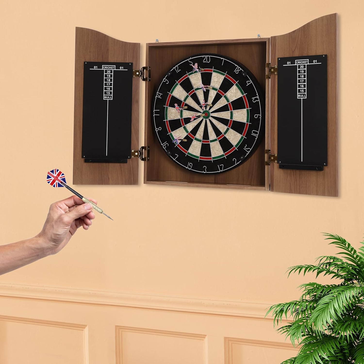 | Model Name | Brown Wall-mounted Wooden Dartboard W/ Cabinet & Dart Boards Set |