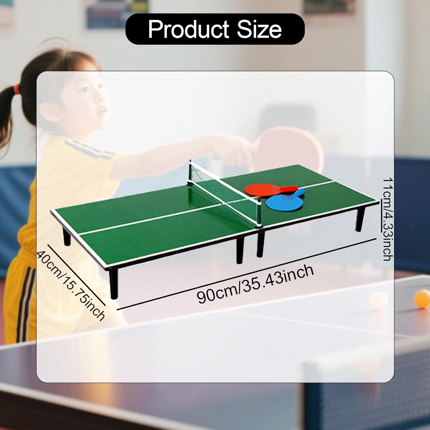 Description: - 【Package Including】: The package includes 1 mini ping pong table and 2 paddles, specially designed for kids - 【Compact Size】: Detachable mini table tennis table, approx. 90cmx40cmx11cm/35.43inchx15.75inchx4.33inch, takes up little space and is easy to place at home - 【Premium Material】: The kids ping pong table is made of premium pp material, lightweight, sturdy, rounded corners and edges to prevent children from getting hurt while playing - 【Exercise Toys】: The compact table tennis table is very suitable for beginners, suitable for children over 6 years old, cultivating children's interest in table tennis, ening the of sports, children's physical fitness, hand eye coordination ability and reaction speed - 【Nice Gift】: The ping pong table set is a nice gift for children at festivals and birthdays, suitable for indoor and outdoorSpecification: - Material: PpSize Chart:90cmx40cmx11cm/35.43inchx15.75inchx4.33inchPackage Includes:1 Mini Ping Pong Table2 Paddles