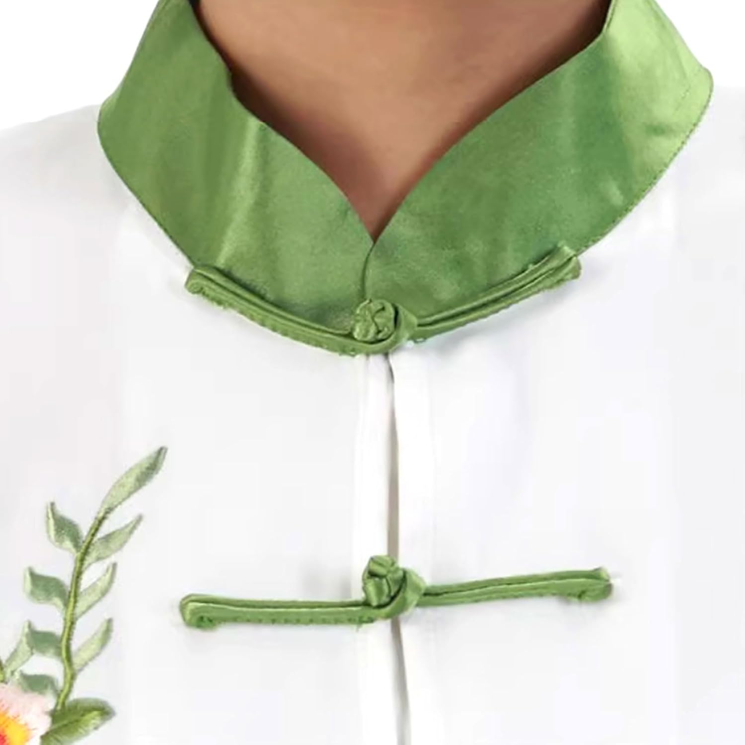 Peony Embroidery Tai Chi Uniform Size Chart : S: Waist : 44.9” Hip :46.5” Top Length : 28.3” Bust : 44.9” Sleeve Length : 30.7” Pant Length : 41.7” M: Waist : 46.5” Hip :48” Top Length : 29.5” Bust : 46.5” Sleeve Length : 31.5” Pant Length : 42.9” L: Waist : 48” Hip :49.5” Top Length :30.7” Bust : 48” Sleeve Length : 32.3” Pant Length : 43.7” XL: Waist : 49.6” Hip :51.1” Top Length 31.9” Bust : 49.6” Sleeve Length : 33” Pant Length : 44.9” 2XL: Waist : 51.1” Hip :52.8” Top Length : 33” Bust : 51.1” Sleeve Length : 33.9” Pant Length : 46” 3XL: Waist : 53.1” Hip :54.3” Top Length : 34.3” Bust : 52.8” Sleeve Length : 34.6” Pant Length : 47.2”