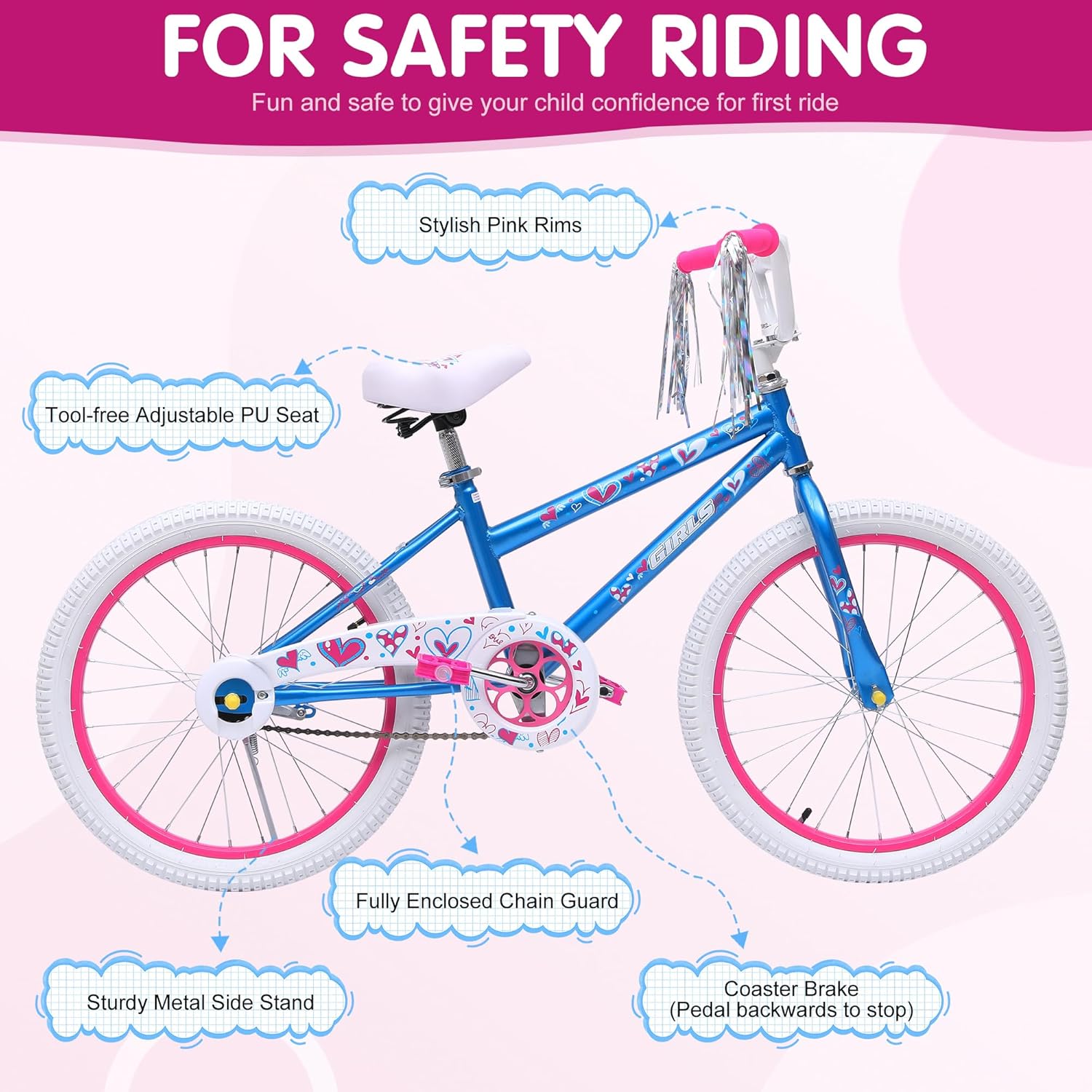 | Additional Features | Removable Training Wheels / Coaster Brake / Fully Enclosed Chain Guard / Comfortable Cushion Seat / Tool-free Adjustable Seat |