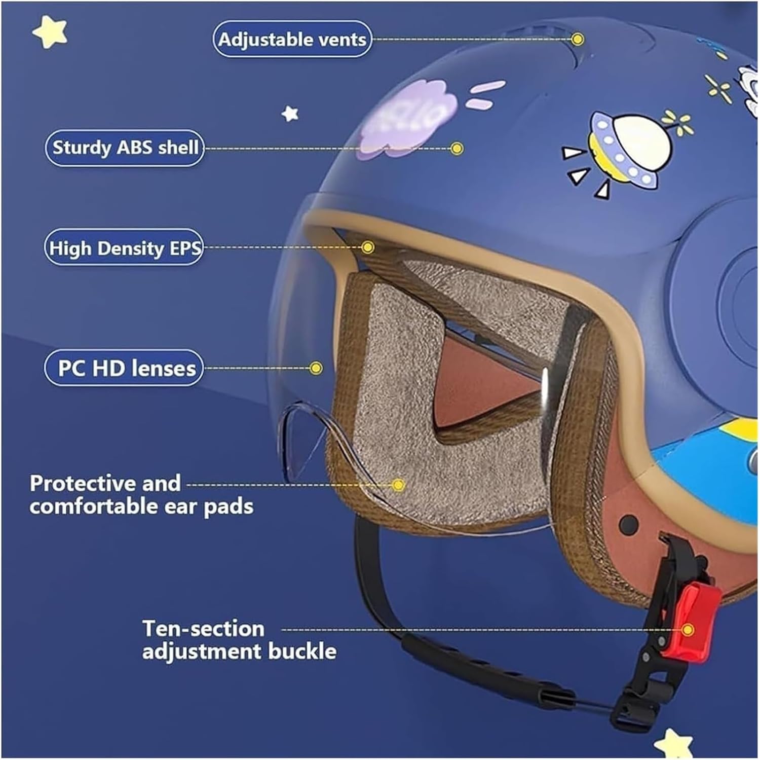 ★ A good motorcycle helmet is a guarantee of children's safety. At the same time, it will provide children with a good and comfortable riding experience. We are a manufacturer specializing in the production of helmets. Both the quality and after-sales service are very comprehensive. I believe you can find the helmet that suits your needs in our small shop.Product Description:Product name: kids motorcycle helmet, youth motorcycle helmet, toddler motorcycle helmetMaterial: ABSProduct weight: 500g±50gProduct size: Free Size 46-54CMProduct types: child motorcycle helmets, youth electric bicycle helmetsApplicable season: all seasonsApplicable people: adults, teenagers, boys, girlsScope of application: motorcycle/bicycle/go-kart/dirt-bike/electric car/scooter/flying/skiing/skating and other safety protection.Package list: 1*Kids Motorcycle Helmet
