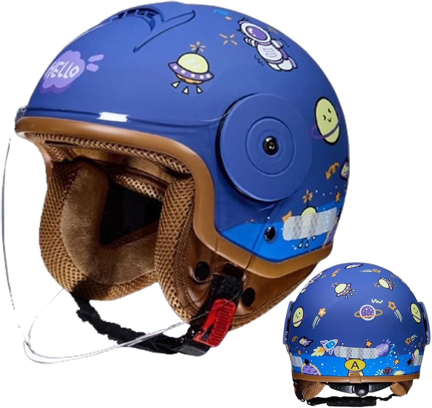 Welcome to our motorcycle helmet shop,explore our wide range of helmets designed for various purposesWhether you're cruising on your vintage Vespa, tearing up the trails on your dirt bike, or zipping through city streets on your scooter. Choose your perfect helmet today and ride with style, safety, and confidence.Helmet information: Product name: Kids Motorcycle Half Helmet, 3/4 Children Vespa Open Face Helmet,Toddler Dirt-Bike HelmetsMaterial: ABSProduct weight: 800g±50gProduct size: Free Size 46-54cm/18.1-21.3inApplicable age: 2-14 years oldApplicable people: teenagers, boys, girlsScope of application: motorcycle/bicycle/go-kart/dirt-bike/electric car/scooter/flying/skiing/skating and other safety protection.Safety Certifications:DOT/ECE CertifiedPackage list: 1*Kids Motorcycle HelmetNote: For an accurate head measurement, wrap a soft (tailor) measuring tape horizontally around your head about 1 above your eyebrows.