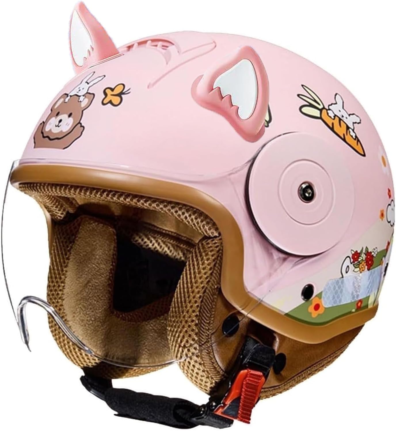 DOT Approved Retro Kids Half Helmets with Cat Ears,Open Face Toddler 3/4 Helmet for Girls Boys 2-14 Years Old,Vintage Youth Go-Kart Dirt-Bike ATV Moped Scooter Bicycle Helmet