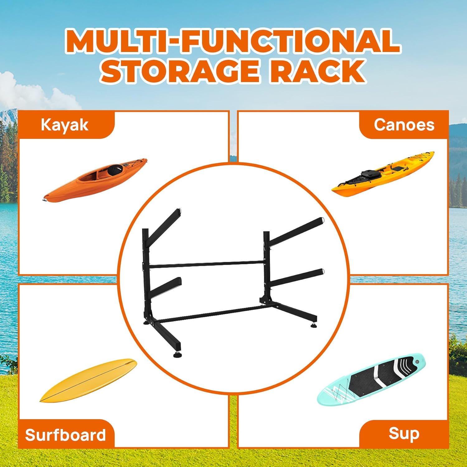 Stop leaning kayaks against the wall or stacking boards on the floor. The Wemily Freestanding Kayak Storage Rack is designed for paddlers who want a cleaner, safer, and more efficient way to organize their gear. Its vertical design maximizes unused space while keeping boats accessible for your next trip. The heavy-duty steel construction delivers dependable support, while protective foam padding helps safeguard surfaces from everyday wear. Whether you're outfitting a home garage, waterfront property, rental fleet, or outdoor storage area, this rack provides a practical solution built around how real customers store oversized equipment. Choose the tier size that matches your setup and create a dedicated storage zone that reduces clutter and protects your investment.