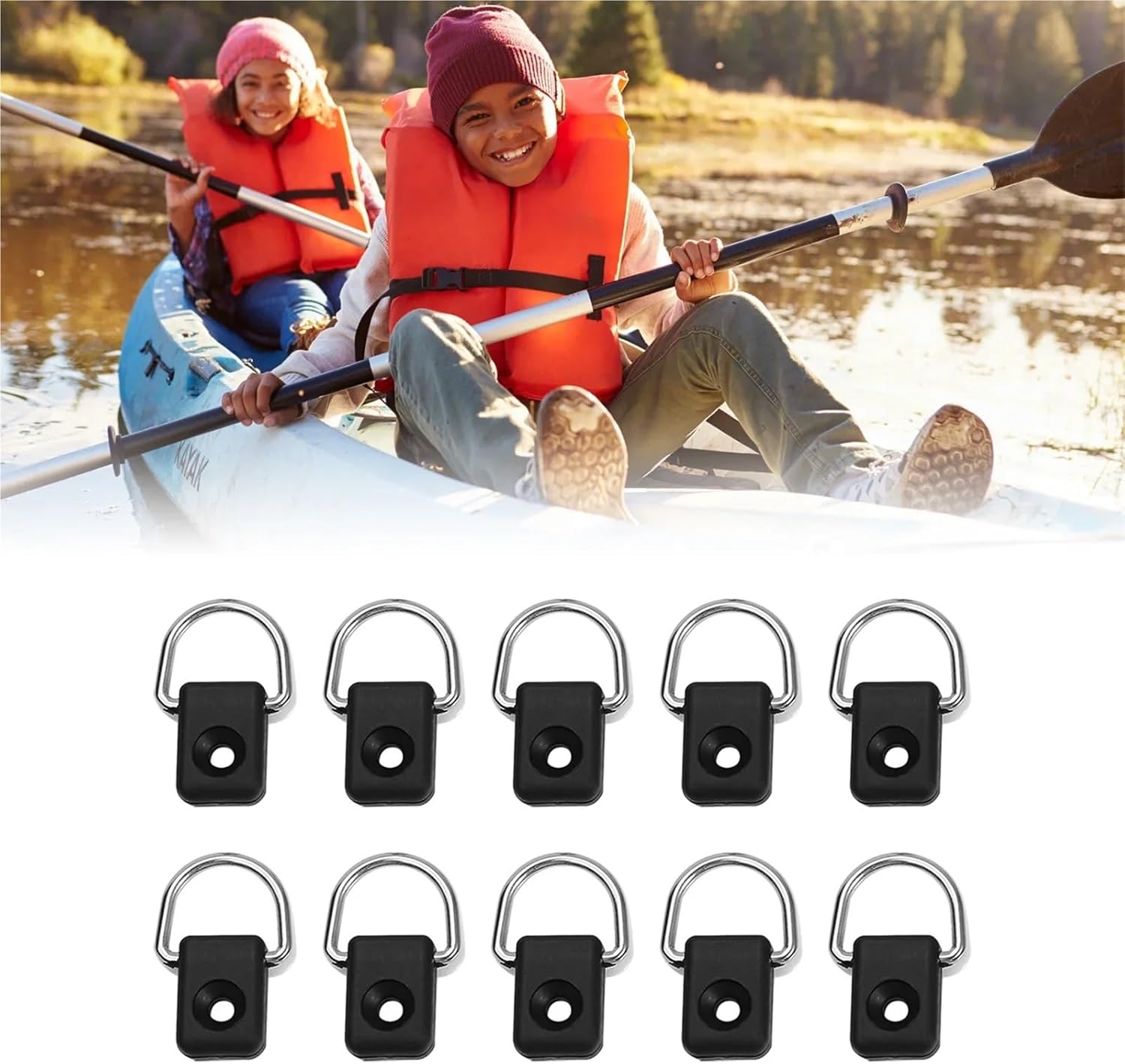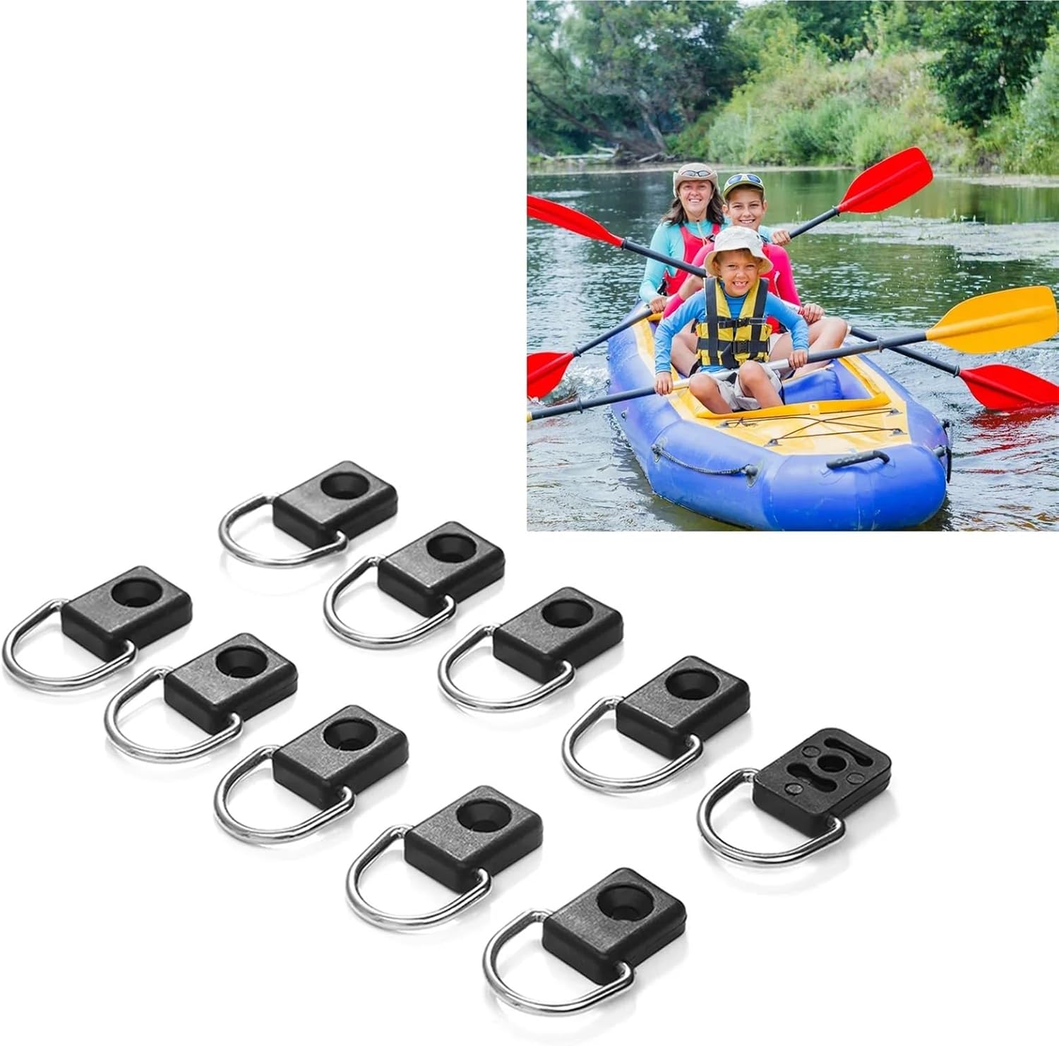 Material: Nylon + Stainless steelD Head Width: approx. 3.4cm / 1.34"Black Cube Size: approx. 3 x 2.1 x 0.7cm / 1.18" x 0.83" x 0.27"Package Weight: approx. 163gQuantity: 10pcs / setPackage Includes:10 x D Rings10 x M6 Screws