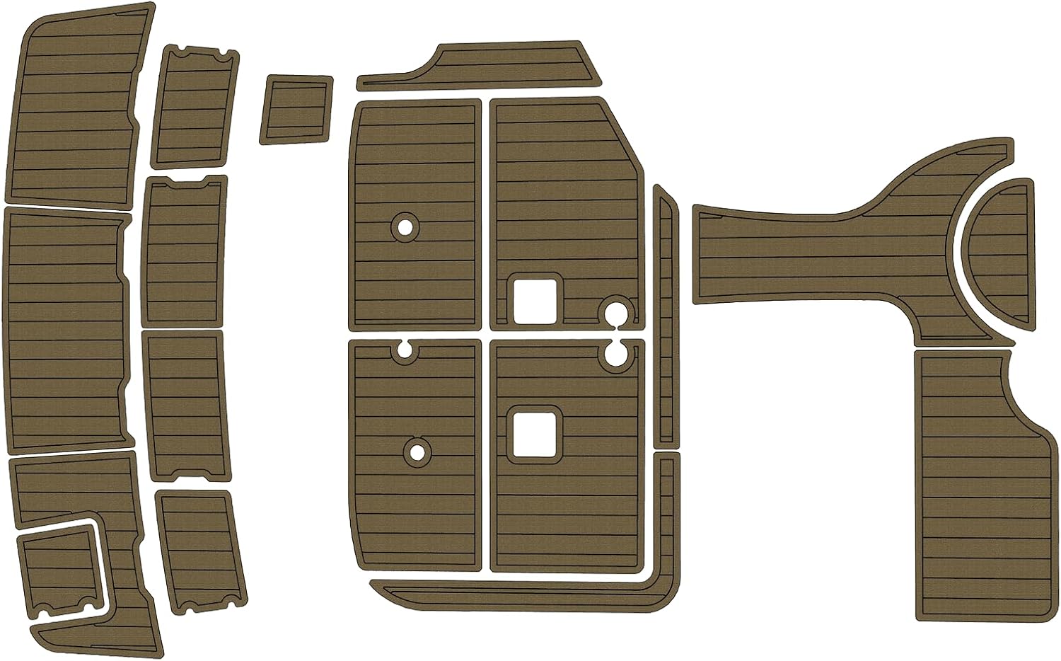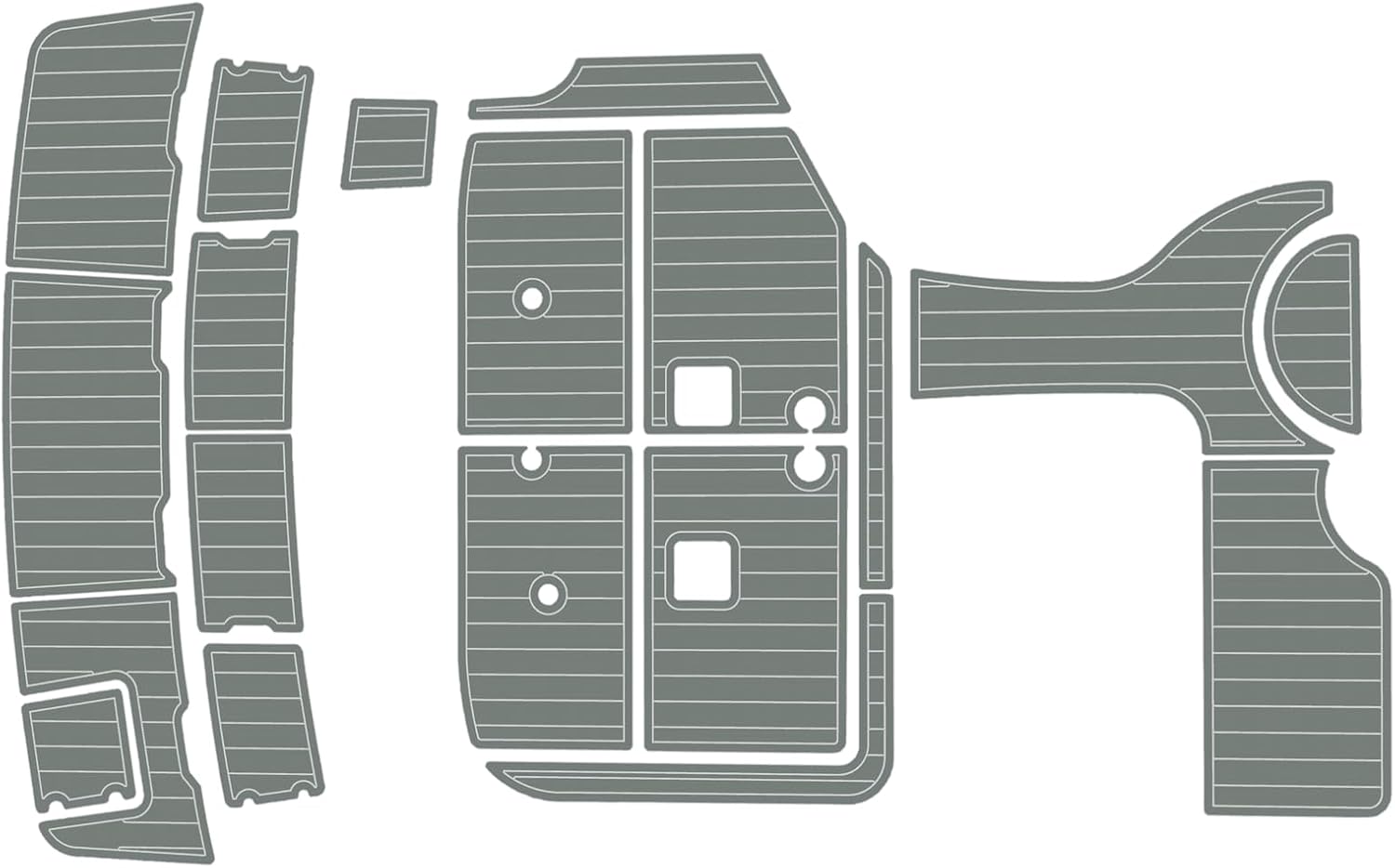 1.EVA Material Advantages: High-density, closed-cell foam – will not absorb moisture or water. Resists discoloration in humid or wet conditions. Optimal firmness: 55-50 Shore hardness for comfortable, supportive feel. Soft, non-slip, and comfortable underfoot. Easy to clean – use common cleaners, brush, and water. Withstands high and low temperature extremes. Provides sound dampening and vibration reduction. Simple installation and replacement – no extra tools or adhesives needed. UV resistant – resists fading from sun exposure. Custom colors, patterns, and LOGO printing available。 2.Before Ordering – Please Note: Verify the product model matches your specific yacht or boat model. Some vessels have different configurations; select the option that best fits yours. If unsure about compatibility, please share photos of your swim platform and cockpit area for confirmation. Contact us for size verification or any pre-purchase questions. Custom Design Services: Complimentary design drawings based on your specifications. Review provided design drafts for your selection. Custom LOGO printing available (e (additional $25 per LOGO )– please provide file in DXF, AI, PDF, JPG, or PNG format. 3.Installation Guide: Clean the deck thoroughly with acetone or alcohol before installation to remove any wax or residue. Ensure surface is completely dry. Lay out all EVA tiles flat. When positioning, peel backing from one corner and begin applying. Press firmly during installation – do not shift or move tiles once placed. Use a roller during installation. Press along any LOGO areas first to prevent air pockets. If bubbles appear, a small needle can be used to release trapped air. Avoid soaking or heavy water exposure for 48 hours after installation.