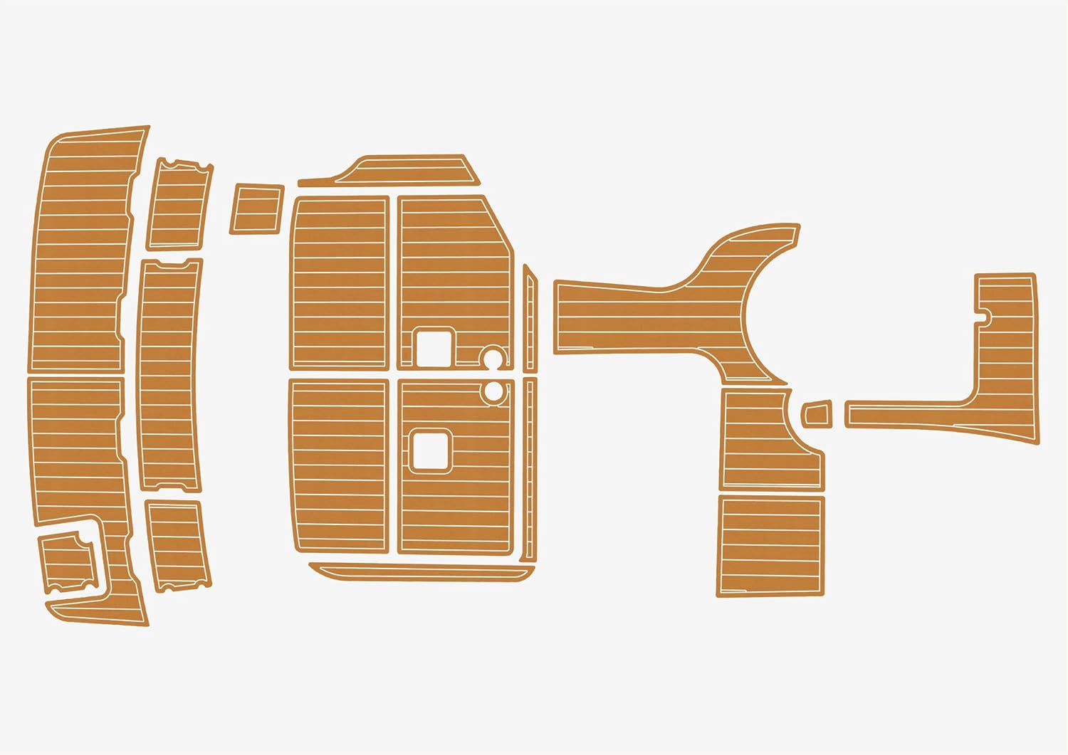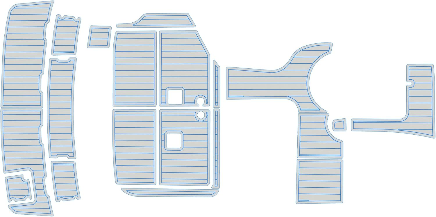 1.EVA Material Advantages: High-density, closed-cell foam – will not absorb moisture or water. Resists discoloration in humid or wet conditions. Optimal firmness: 55-50 Shore hardness for comfortable, supportive feel. Soft, non-slip, and comfortable underfoot. Easy to clean – use common cleaners, brush, and water. Withstands high and low temperature extremes. Provides sound dampening and vibration reduction. Simple installation and replacement – no extra tools or adhesives needed. UV resistant – resists fading from sun exposure. Custom colors, patterns, and LOGO printing available。 2.Before Ordering – Please Note: Verify the product model matches your specific yacht or boat model. Some vessels have different configurations; select the option that best fits yours. If unsure about compatibility, please share photos of your swim platform and cockpit area for confirmation. Contact us for size verification or any pre-purchase questions. Custom Design Services: Complimentary design drawings based on your specifications. Review provided design drafts for your selection. Custom LOGO printing available (e (additional $25 per LOGO )– please provide file in DXF, AI, PDF, JPG, or PNG format. 3.Installation Guide: Clean the deck thoroughly with acetone or alcohol before installation to remove any wax or residue. Ensure surface is completely dry. Lay out all EVA tiles flat. When positioning, peel backing from one corner and begin applying. Press firmly during installation – do not shift or move tiles once placed. Use a roller during installation. Press along any LOGO areas first to prevent air pockets. If bubbles appear, a small needle can be used to release trapped air. Avoid soaking or heavy water exposure for 48 hours after installation.