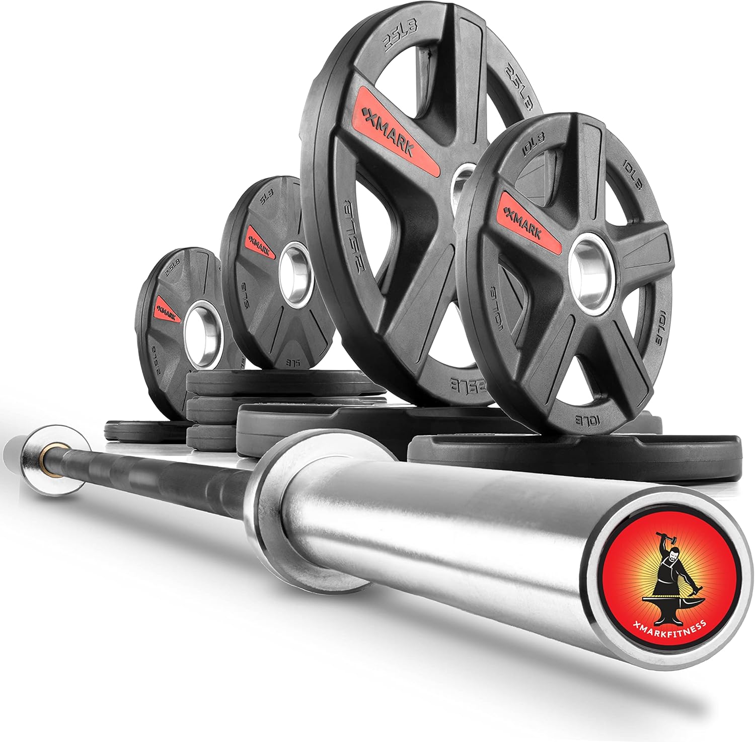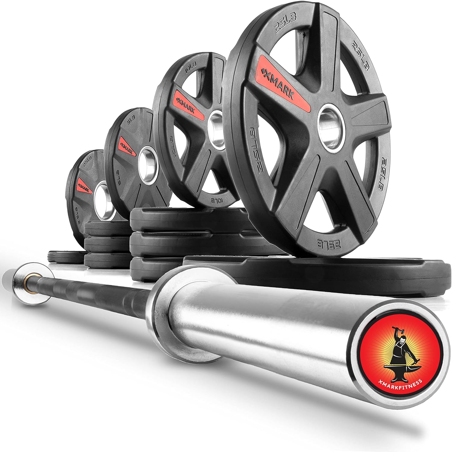 Looking for an Olympic bar with weights? XMark offers both, Olympic barbells and Olympic weights. Some may refer to XMark Olympic weight plates as barbell weights, barbell plates, rubber coated plates or metal, steel and iron plates. Whatever you call them…they’re quality plates. XMark Olympic weights fit all 2 inch Olympic weight bars including curl bars, hex bars, tricep bars, trap bars, and all 7 ft. Olympic bar brands. Some customers have asked, what is the difference between Olympic plates and bumper plates? Olympic weight plates and bumper plates are similar. The main difference is bumper plates can be dropped. It is important to select a weight plate set that meets your needs. XMark offer all the standard weight plate pairs plus a wide selection of Olympic weight sets. Olympic weight sets will include a combination of 2.5lb, 5lb, 10lb, 25lb, 35lb and 45lb weight plate pairs. The quality of XMARK's Olympic weight plates and Olympic bars is excellent. XMark offers a large selection of Olympic bars, Olympic weight plates and weight plate sets to meet your budget.
