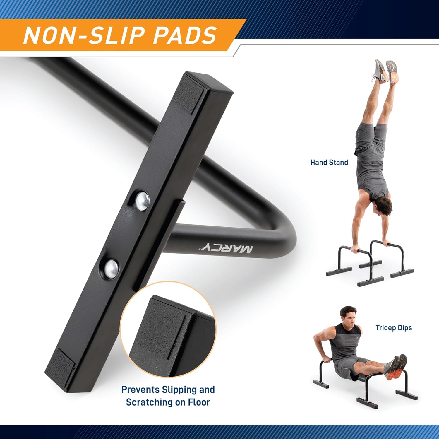 Take your home workouts to the next level with the Marcy Parallette Bar ACC‑0333‑PARA – the ultimate tool for building strength, balance, and core stability. Designed for fitness enthusiasts of all levels, these premium powder-coated steel bars are built to last and provide a rock-solid foundation for push-ups, dips, L-sits, handstands, and other bodyweight exercises. Compact, lightweight, and portable, the Marcy parallette bars allow you to turn any space into a full-body training zone. Anti-slip pads keep the bars steady and protect your floors, so you can focus on your workout with confidence. Whether you’re looking to sculpt arms, shoulders, chest, or improve overall core strength, the ACC‑0333‑PARA delivers performance, durability, and versatility in one sleek package. Unlock your full potential and bring professional-caliber calisthenics training into your home with Marcy.