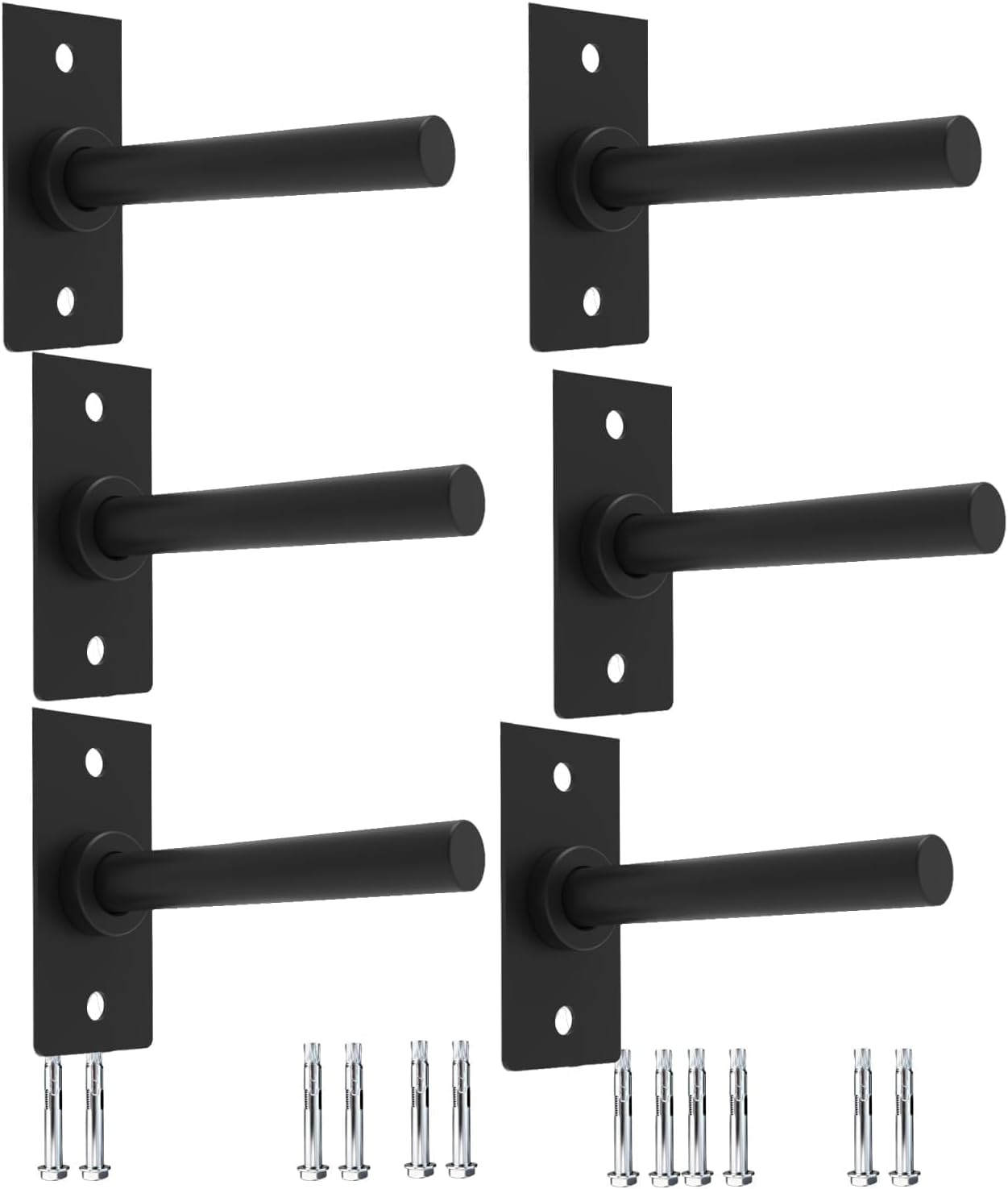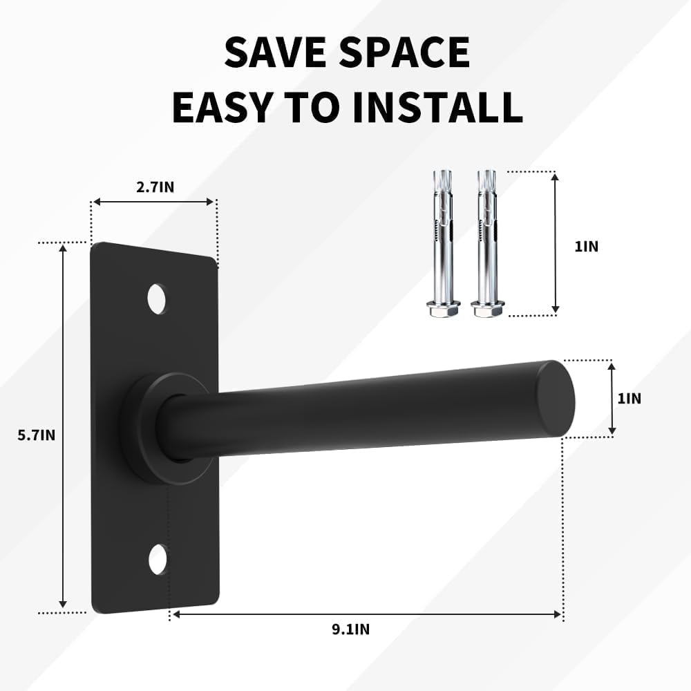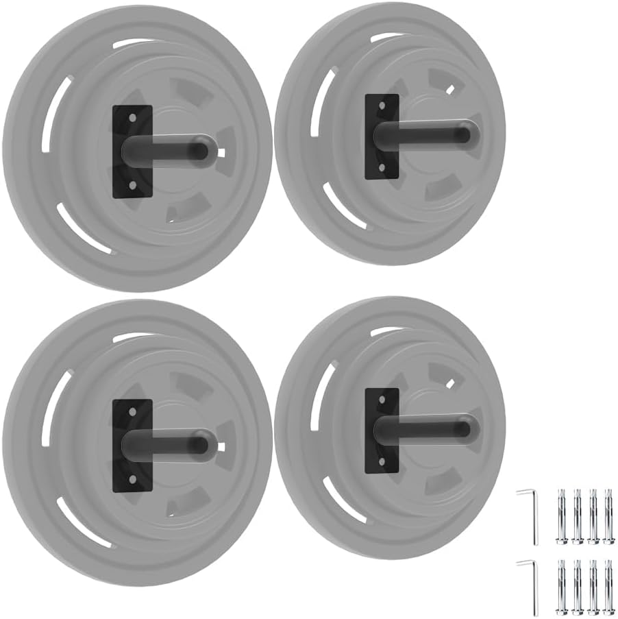 Heavy-Duty Wall Mounted Weight Plate Holder – Maximize Your Gym SpaceEffortlessly organize your home gym or commercial fitness center with this robust Wall Mounted Weight Plate Holder. Constructed from high-strength Q235 steel and finished in a sleek, matte black powder coating, it's engineered for superior durability, rust resistance, and long-term performance. Each holder supports up to 300 lbs, securely storing both 1-inch and 2-inch international sports or standard weight plates—ideal for a range of strength training, bodybuilding, and cross-training setups.global Compatibility: Adjustable design fits both 1" and 2" plates, covering most international and standard weight sizes. Easily switch between sizes using the included screw and sleeve for a perfect fit.Space-Saving & Safe: Wall-mounted installation clears floor clutter, helping prevent tripping hazards and keeping your workout space tidy and efficient.Protective Features: Soft rubber pads on all contact points shield your plates from scratches and reduce noise during loading and unloading.Quick Installation: Comes with all required mounting screws, expansion bolts, and clear instructions for a secure, hassle-free setup. Multiple pack options available (2, 4, 6, or 8 holders) to suit any storage need.Professional Gym Aesthetics: The matte black finish complements any gym or garage decor for a modern, organized look.Package Includes:Weight Plate Holders (pack size as chosen)Expansion Screws & BoltsProtective Rubber PadsUpgrade your fitness area with this basic weight plate rack—combining strength, efficiency, and safety for a clutter-free training environment.
