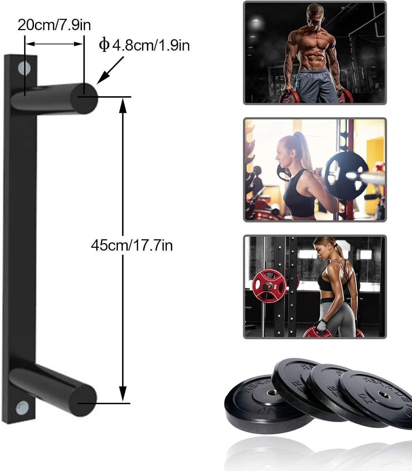 Why did you choose weight shelf?The Olympic weight rack can save a lot of space in the gym due to its wall-mounting function. The length of the hanging rod is 20 cm. You can also hang about 4 weight plates at the same time, so that your gym or home will change from clutter to orderly.Product Details:Material: SteelStorage pole length: 20cmDiameter: 4.8cm; for 50mm(2inch) olympic weight plateswWeight Capacity: 200kgProduct Packaging:1 * Wall-mounted Barbell Rack (Including installation accessories)Notice:If you have any questions, please write to us and we will be happy to help you.