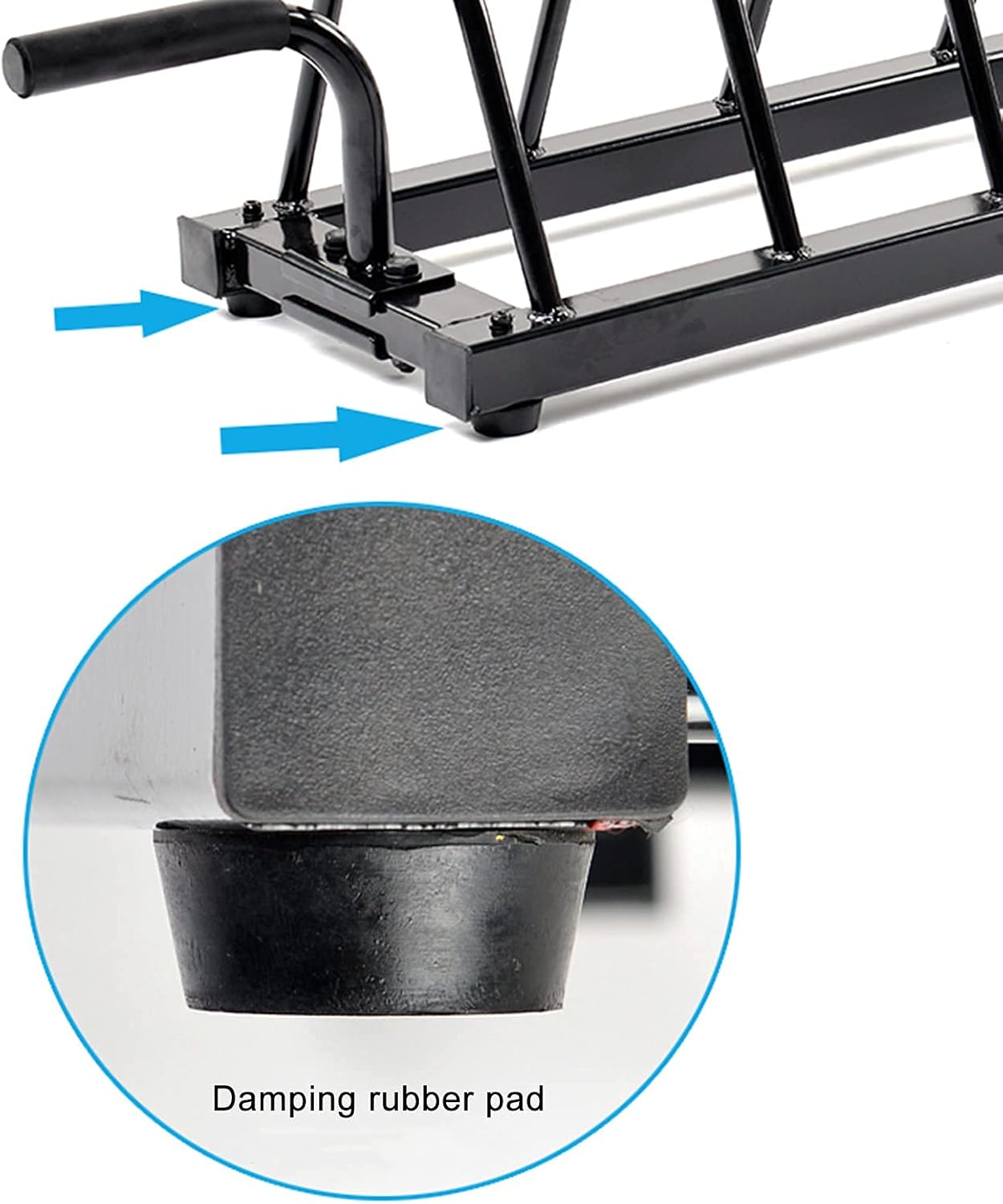 ★ Durable : No flaking and anti rust painted metal stand ensure long-term use; extra abrasion resistant painting on the weight plate holders for added durability ★ Description: Packing size: 945*320*180mm Product weight: 11.3kg/24.91 LBS Function: can store a barbell plate and a barbell bar, make full use of space ★ After-sales service: If you have any questions about our products, please feel free to contact us and we will provide you with detailed answers