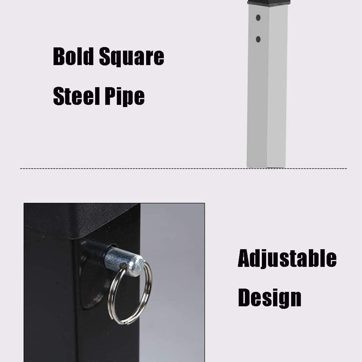 Adjustable squat rack for home use. You need not worry that you can not train Feature: Robust and stable: metal cast iron frame with enlarged main bracket Load: 200 kg Anti-slip pad: rubber feet to ensure that the soil is not scratched Versatile: squat rack weightlifting (without barbell) CAVEAT Always consult a doctor before making any exercise plans. Excessive or incorrect training can harm your health. Be sure to read and follow the assembly and user instructions. After eating, please wait 1 to 2 hours before exercising. This device must be used on a flat surface. Before each use, check that the locking pin is fully engaged and that all nuts and bolts are tight. Before you exercise, remove jewelry, rings, chains, pins or other things that may get stuck. Always wear the right clothes and shoes when exercising. To prevent injury, be sure to warm up properly before exercising.