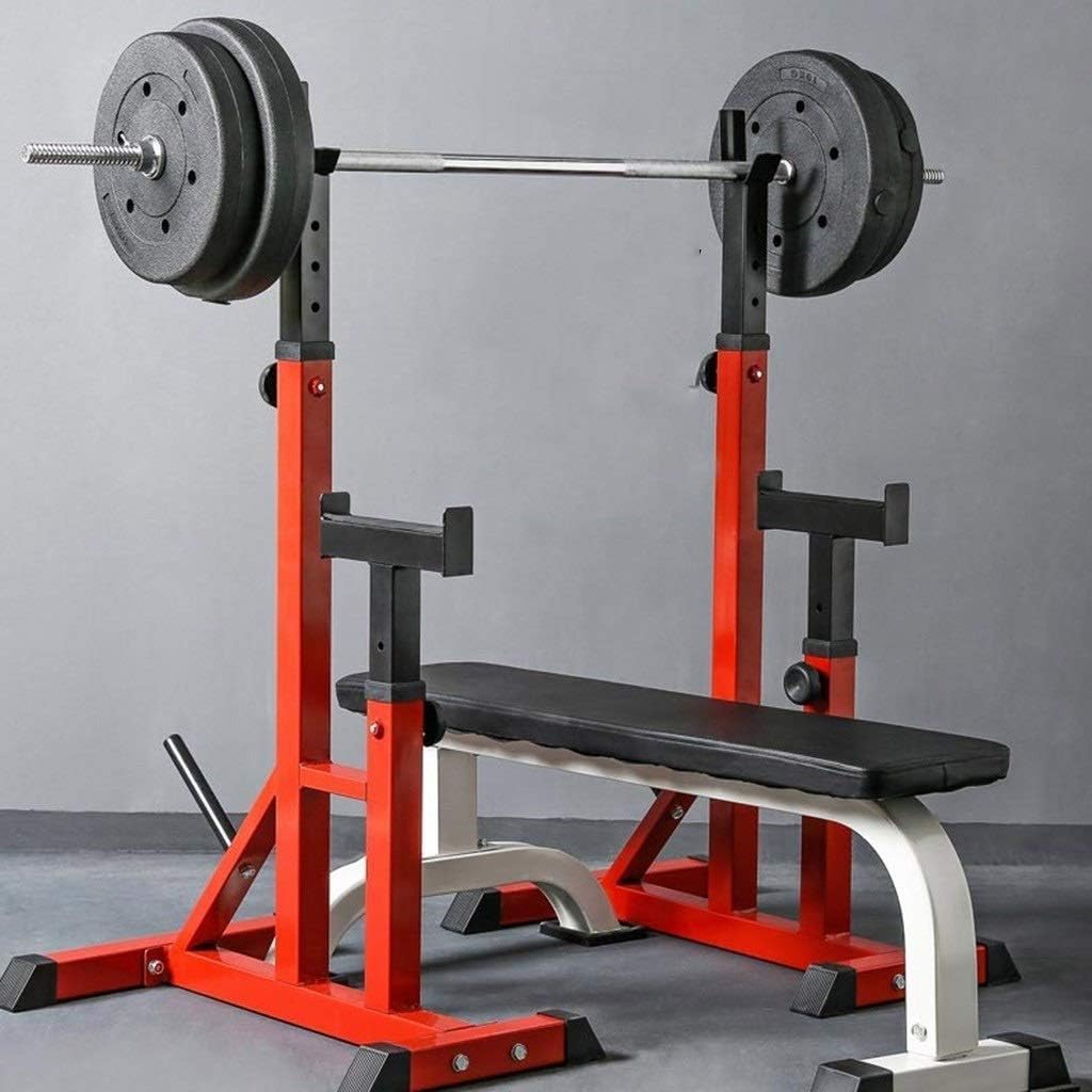 This is not only a squat rack, but also a bench press, fitness equipment that can be used at home to facilitate fitness. Exercise your arms, waist and leg muscles to keep your body healthy. Every man should have a body. _ This Squat rack allows you to bring your workout weight to your own private space, for dumbbells and abdominal exercises at home. _ Squat rack material: high quality steel _ fitness effect selection: overall weight loss / keep the body _ Maximum load capacity: 300KG _ overall size: 4570152cm(17.727.659.8inches) _ Note: 1. Please use the activity for 5 minutes each time, otherwise your body will feel tired. 2. Stretch after exercise and restore your body. _ We only sell Squat rack, other products are props. _ Size Description: Manually measure the product size. Please forgive the 1-3cm error.