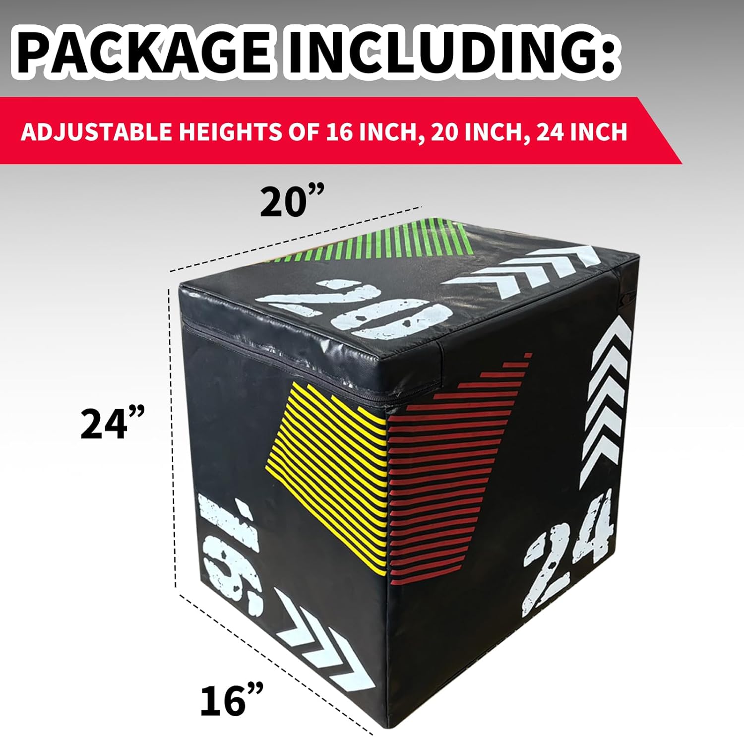 Name: Plyo Jumping Exercise BoxMaterial: PVC/ Wood board/ Recycled CottonSize: 16/20/24 Inch20/24/30 Inch