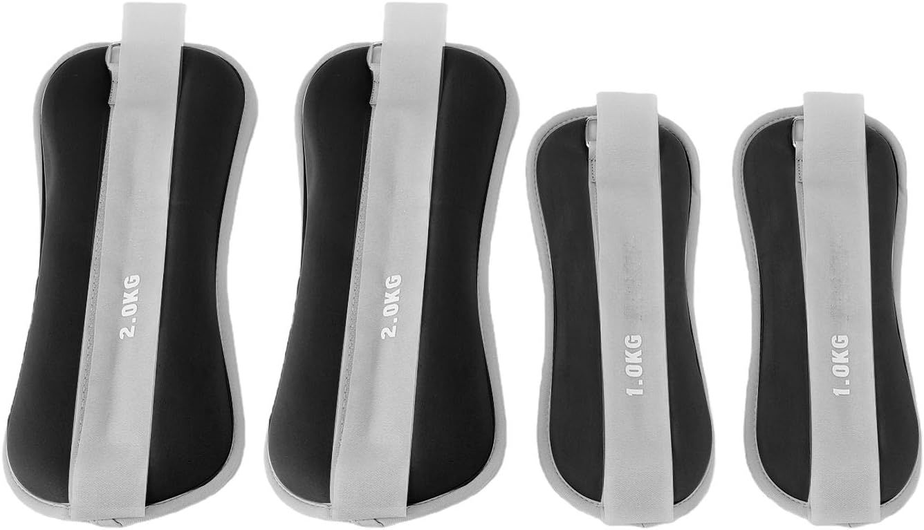 4 Pcs Wrist Weights 2.2 Lbs and 4.41 Lbs Strength Training Weights for Wrist Ankle Arm Leg Ideal for Yoga Pilates Barre Walking Home Fitness Comfortable Breathable Sandbag Design with Secure Double Layer Protection 1. VERSATILE TRAINING TOOL: This weighted sandbag is designed for wrist, ankle, arm, and leg strength training, crafted with high density organic water proof fabric to ensure a comfortable workout experience. 2. SOFT AND BREATHABLE MATERIAL: The wrist weights for strength training features a soft and breathable design, providing long lasting comfort during extended use without causing discomfort. 3. SECURE DOUBLE LAYER PROTECTION: The arm leg weights adopts a full coverage double layer design to prevent sand leakage, offering stable performance during intense exercises. 4. ENHANCED FITNESS PERFORMANCE: The wrist and ankle weights helps increase exercise strength, promoting fat burning and muscle building, ideal for home workouts, walking, jogging, and running. 5. ROBUST AND FUNCTIONAL DESIGN: Made with iron sand and nylon diving fabric, this strength sandbag comes in precise sizes (1kg: 12.6 x 4.33in, 2kg: 13.78 x 5.31in) for versatile training needs. Specification: Item Type: Training Weighted Sandbag+ Material: Iron Sand + Nylon Diving Fabric Size: Approx. 1kg: 32 x 11cm / 12.6 x 4.33in / 2kg: 35 x 13.5cm / 13.78 x 5.31in packing list: 2 x 2.2 lbs Arm Leg Weights 2 x 4.41 lbs Arm Leg Weights Note: