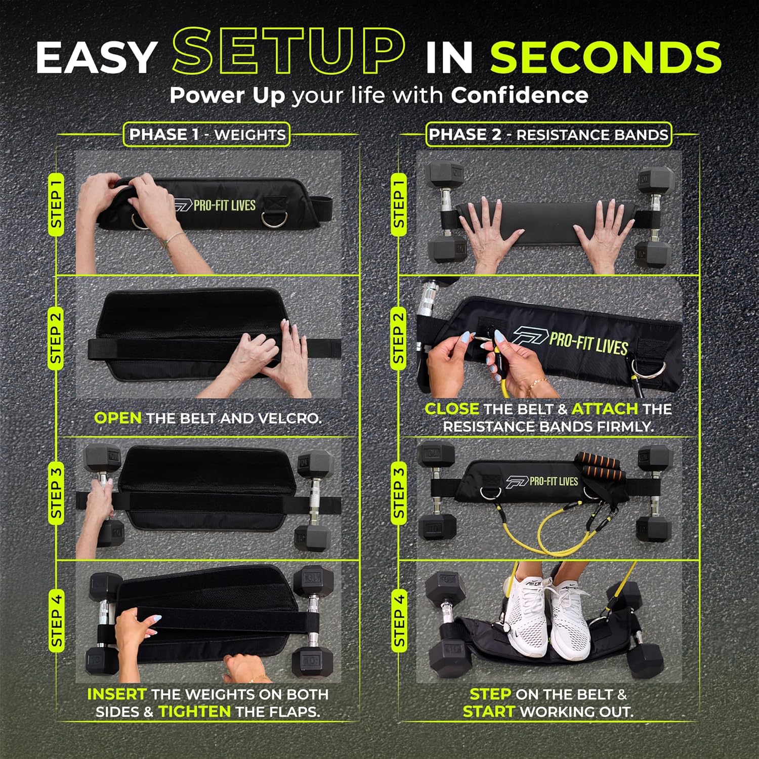| Material | EVA Foam (belt padding), Metal (D-rings), Natural Latex (resistance bands), Plastic & Foam (handles), Slip-resistant Nylon (belt strap) |
