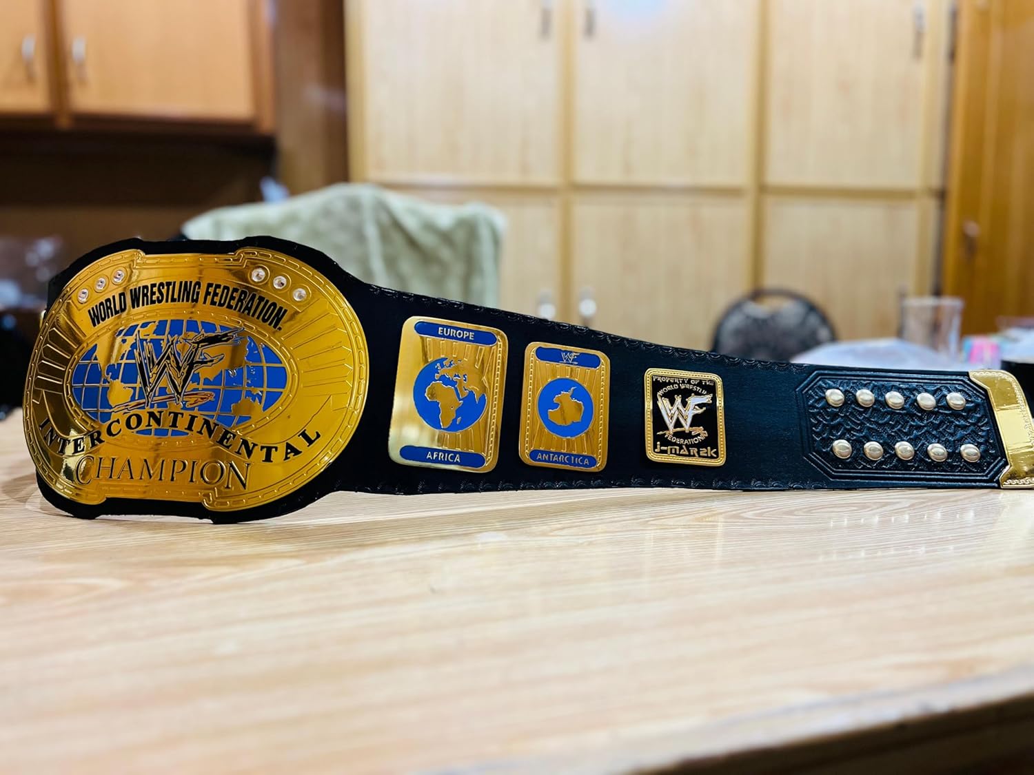 Intercontinental Championship OLD Wrestling Replica Title Belt – Adult Size (2mm Brass) Bring home a piece of wrestling history with this Intercontinental Championship OLD Replica Title Belt, faithfully recreated to match the classic design worn by legendary wrestlers. Whether you're a fan of old-school wrestling, a collector, or looking for a standout piece for your next event, this replica belt delivers on both authenticity and quality. Key Features: Authentic Design: This replica belt replicates the vintage look of the original Intercontinental Championship, capturing the essence of the golden era of wrestling. 2mm Brass Plates: Made with 2mm thick brass plates, the belt offers a sturdy, premium feel, complete with intricate engravings and gold-tone finish for an authentic look. Adult Size Fit: This belt is designed for adult collectors, featuring an adjustable strap that fits waist sizes up to 46 inches, making it wearable for fans or perfect for display. High-Quality PU Leather Strap: The strap is crafted from durable, comfortable PU leather, ensuring it holds up well whether you wear it or display it in your collection. Perfect for Collectors & Fans: Ideal for wrestling enthusiasts, this belt can be used for display, cosplay, events, or as a standout piece in any wrestling memorabilia collection.