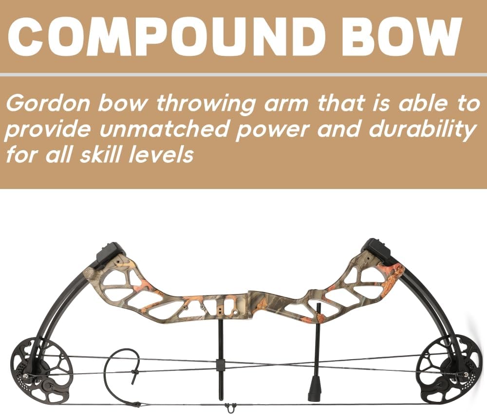 | Included Components | 1x Arrow Puller 1x Sight 1x Wrist sling 1x Release aids 1x Arrow rest 1x Riser stabilizer 1x Wrench 1x Bow stand 1x Arm Guard 1x Bowstring wax, 1x Compound Bow 5x Target paper 6x Carbon arrows 6x Arrowhead 6x Target Nial 1x Bow bag |