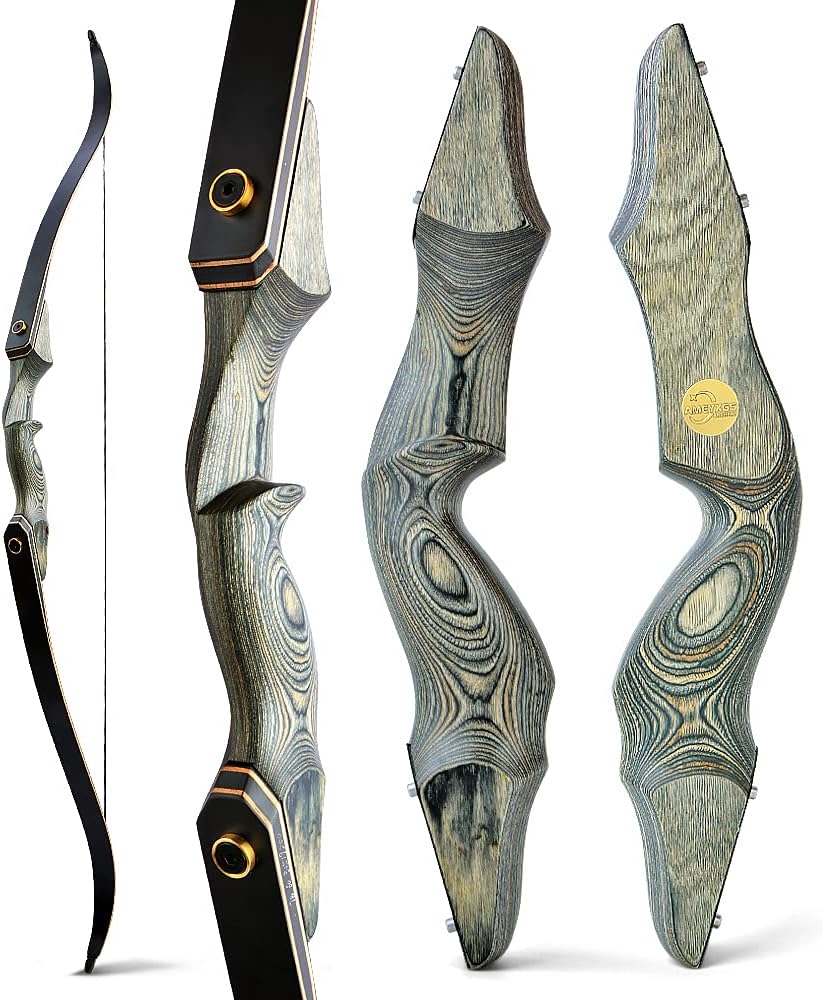 Specification: 1. 60 inch Takedown Recurve Bow Draw Weight: 25-60lbs ( 5 lb increments) Bow Length: 60inch Maximum Draw length: 30inch Bow riser length: 15inch String Length:145cm 2. Carbon Arrow Material: Mix Carbon Arrow Standard length: 30.5 inch/77.5cm Total Length: 31.5 inch/80.4cm Spine: 500 OD: 7.8mm, ID: 6.2mm Arrow Weight: 34.8g Arrow feather: 4 Inch 2 Green 1 Black Turkey Feathers Arrowhead: 100 Grain removable point 3. Archery Takedown Recurve Bow Case Material: High quality ABS Size: 90*22*13cm Weight: 1.65kg Color: Black/Blue Features: High hardness, anti-compression, anti-fall, shock-proof and anti-pressure, portable, hand-carry & shoulder-carry 4. 3-fixed sharp blades hunting broadheads Material: steel and aluminum Length: 7.1 cm Weight: 100 grains Cutting diameter: 2.8 cm Blade: 3 sharp fixed blade Package Types: Package Type 1: 1 x Recurve Bow Only Package Types 2 : Bow and Arrow Set Set package includes: 1 x Recurve Bow 1 x Bowstring Stabilizer 1 x Arm Guard 1 x Finger Guard 1 x Bow Stringer 1 x Arrow Rest Leather 1 x Bowstring Wax 1 x Arrow Quiver with 3-tube 1 x Broadheads Box 6 x Hunting Broadheads with 3 fixed blades 1 x Takedown Recurve Bow Case 6 x Carbon Arrows Features: An Excellent Hunting Bow. The bows speed is great, have an extremely accurate shot and easy draw. The arrow fly's off very smoothly and fly absolutely fast, suitable for almost all hunter archers to practice marksmanship. It is so much fun and very relaxing, you can shoot longer without as much fatigue.