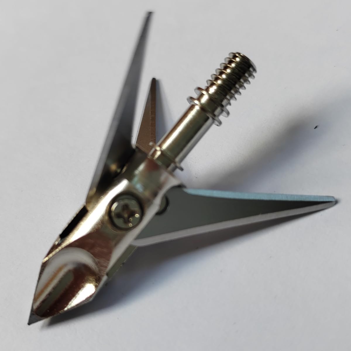 Upgrade your hunting or target shooting experience with these 100 grain fixed blade broadheads. Designed for accuracy and power, each broadhead features a sharp stainless steel blade and durable anodized iron body. The 3-blade design ensures strong penetration and reliable performance. Compatible with crossbows, recurve, and compound bows, they screw in easily and fly like field points. Ideal for outdoor practice and small to medium and especially Big game hunting deer moose elk wapiti caribou bear bison buffalo goat sheep lion cougar antelope coyote buck doe . these arrow tips deliver precision and strength in every shot.