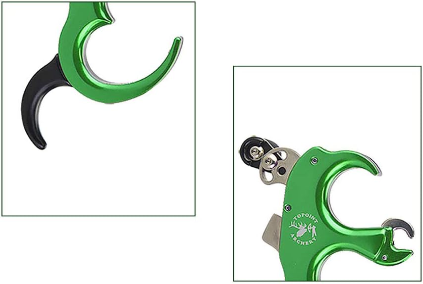 Features: High quality steel and aluminum alloy CNC machining technology surface oxidation treatment Smooth contoured handle comfortable grip feeling It can be changed from 3 finger to 4 finger Fit for both left and right hand Detachable come with a wrench d loop rope and screws Save your effort and protect your fingers working smoothly Easy to carry and use Perfectly match compound hunting bow it is a perfect accessory for archery lovers Details: Material: high quality steel and aluminum alloy Color: black/red/green/purple/gold/blue/grey Weight: 109g D rope length: 18.5 inch Package: 1 x release aids 1 x finger module 2 x replacement screw 2 x wrench 1 x replacement spring