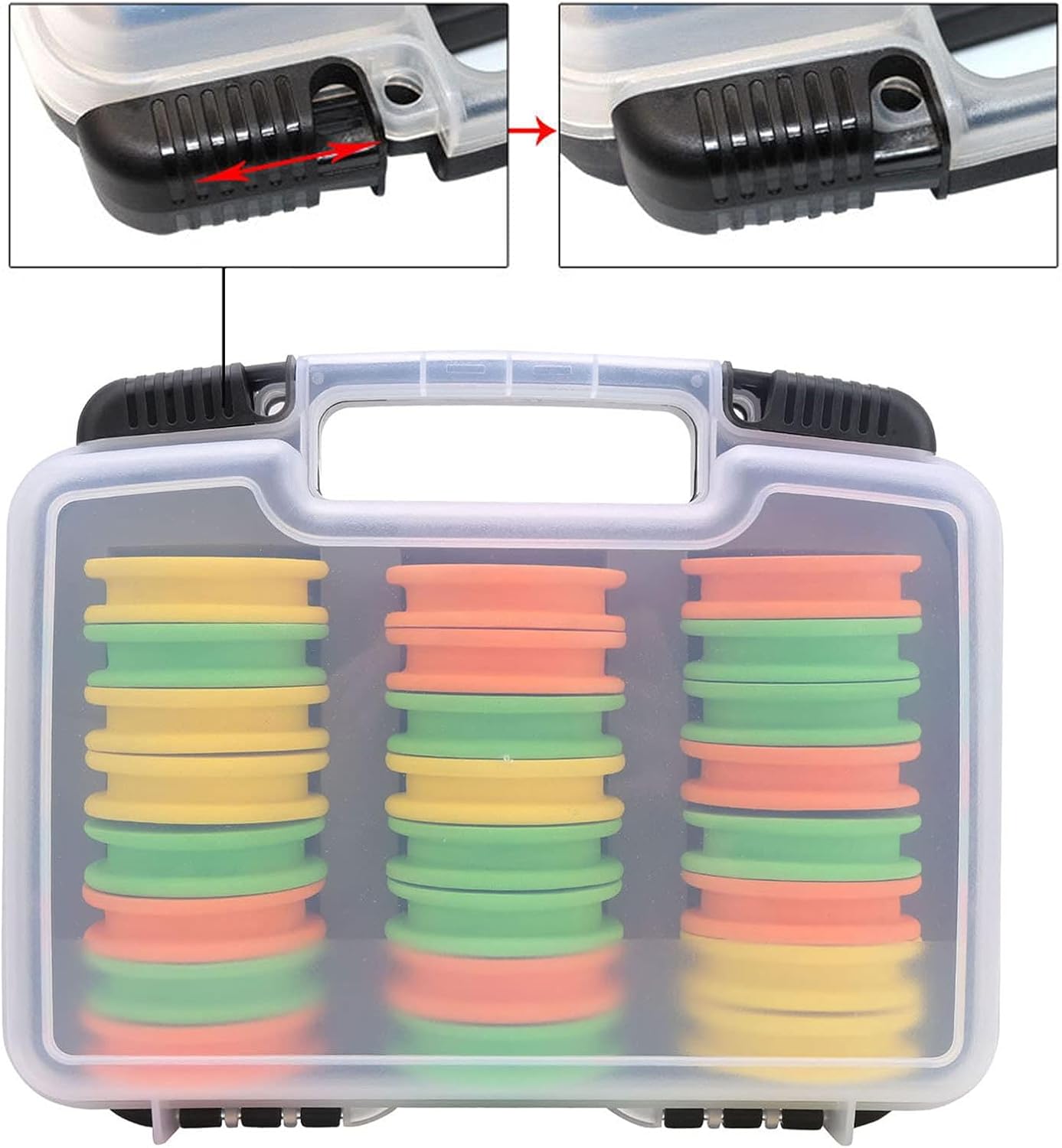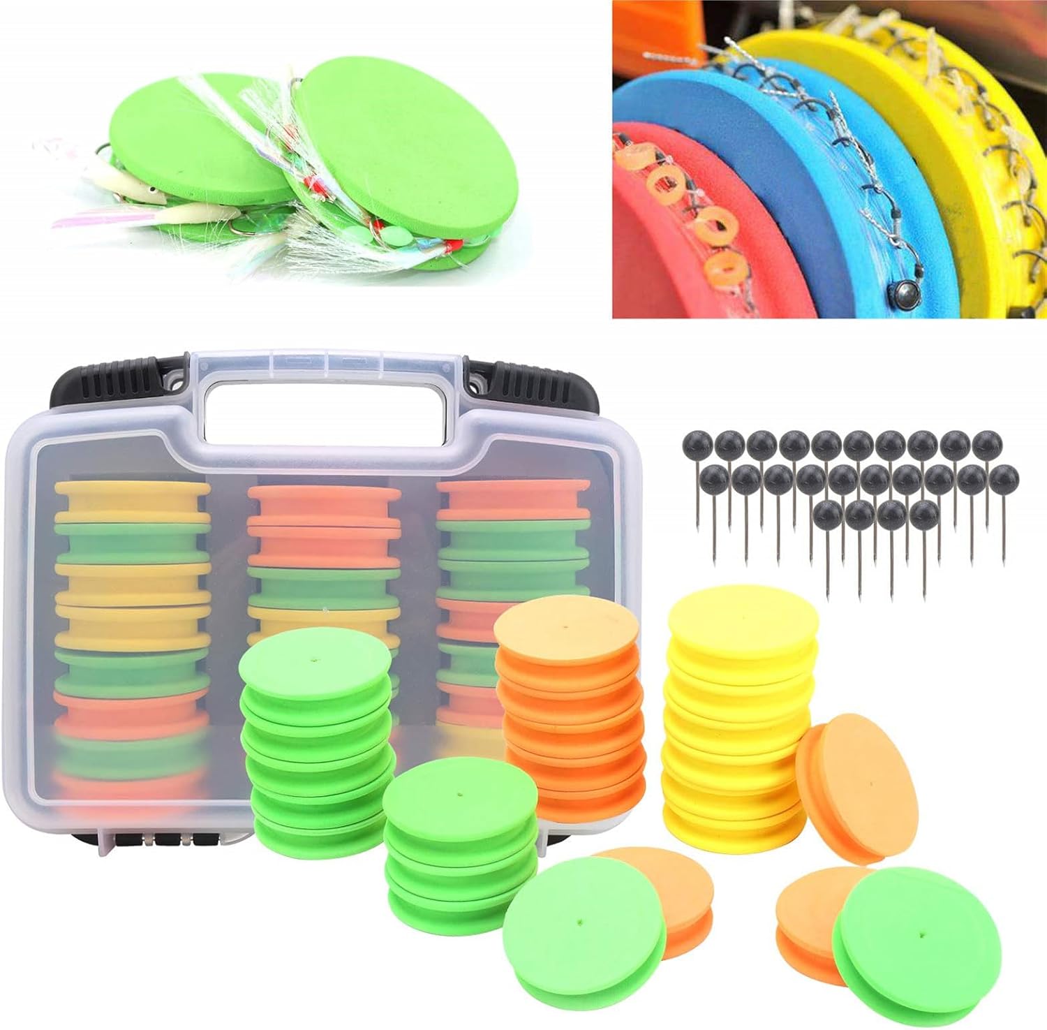 24Pcs Round Fishing Line Foam Spools Fishing Line Storage Holder Fishing Line Spooler Winders Fishing AccessoriesFeatures: The fishing line spools is in a variety of color. Different color Fishing Line Spooler Winders fit unique accessory, and various combinations can meet all needs.Make from highly density sponges, the foam spool is builted to bear the harsh conditions of long terms use and storage in fishing tackle box. The included box is make from ABS, offering a safe way to store your fishing line spools.This fishing line storage holder is light weight, making it easy to carry and handle.With size of 65x17mm, these foam spools significantly reduce the risk of fishing line tangles, providing excellent maintenance for your fishing line.Specifications: Materials: FoamBox size: about 260x200x80mm/10.24x7.87x3.15inchWire spool size: about 65x17mm/2.56x0.67inchPackage Includes: 24Pcs Round Fishing Line Foam Spools1Pc Storage BoxNote: Please allow 1-2cm errors due to manual measurement, make surely that you not mind before order. Due to difference between different monitors, the picture may not reflect the actual color.
