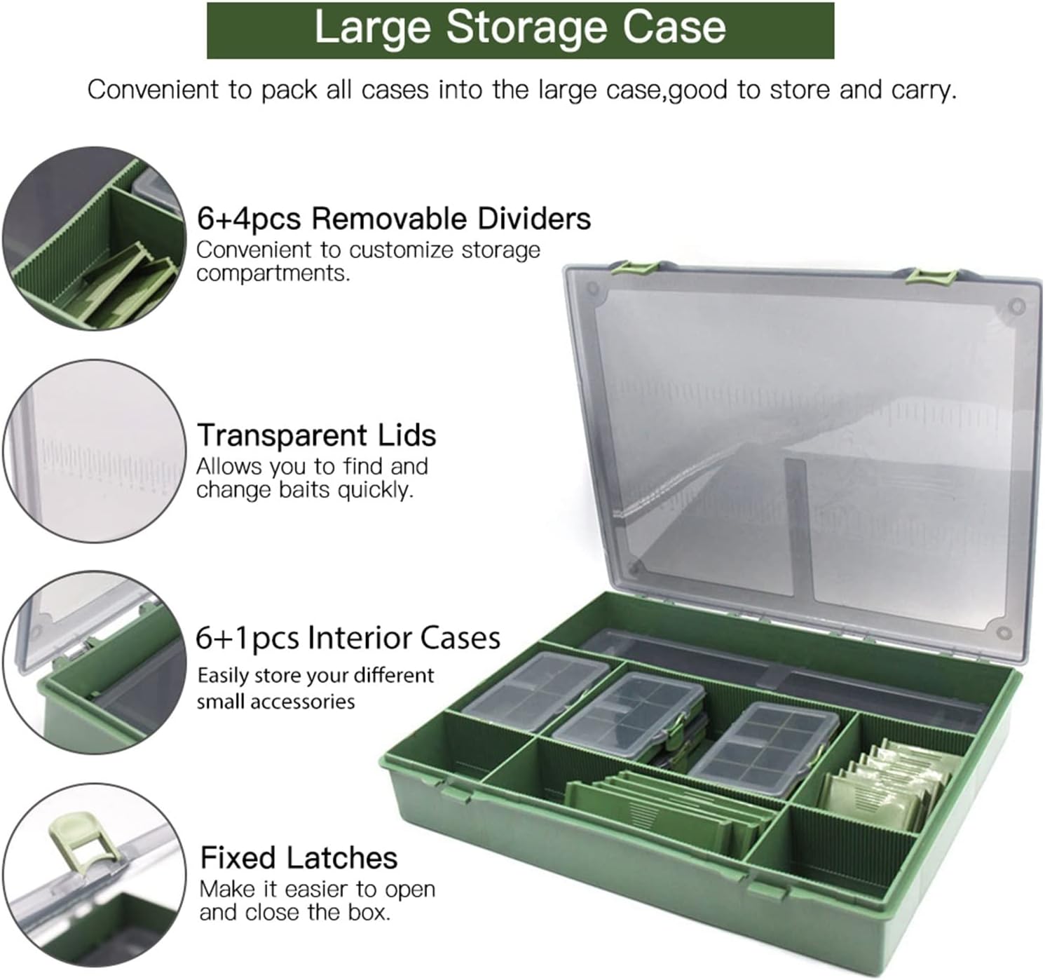 Enhance your outdoor experience with our versatile fishing tackle bag. Product name: Fishing gear box material: plastic Large box: 365*285*55mm/14.4*11.2*2.2 inches Long box: 345*90*30mm/13.6*3.5*1.2 inches Small case: 105*65*24mm/4.1*2.6*0.9 inches Weight: approx. 1280 g/2.8 lbs. packing list: 1* big box 1* long box 15/20* ball needle (quantity sent randomly) 6* small box 6* small dividers 4* large dividers 1*Instruction manual