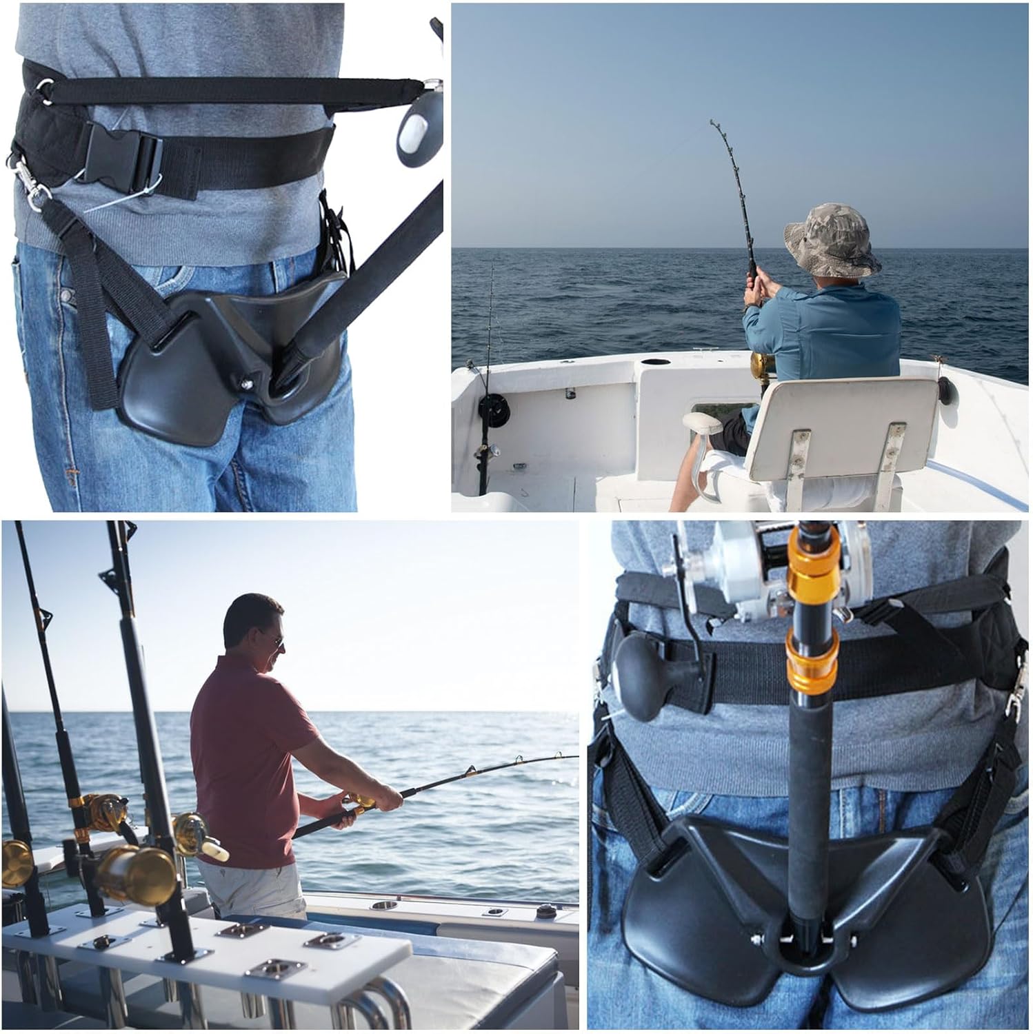 Fishing Belt Rod Holder Adjustable Fishing Fighting Waist Belt Features Resistant to Seawater Corrosion The fishing rack is made of high-quality plastic, which is durable, corrosion-resistant and lightweight, suitable for long-term use. Adjustable belt All components are adjustable for maximum comfort. Maximum adjustable belt length: 130CM/51.2". Hole inner diameter: 4.5CM/1.8". Impact-resistant touch The thick EVA pads make you feel comfortable and protect your belly when fighting with fish. The very strong and durable hip pads are designed to deal with the most fearsome fish. An ideal accessory for saltwater boat fishing.