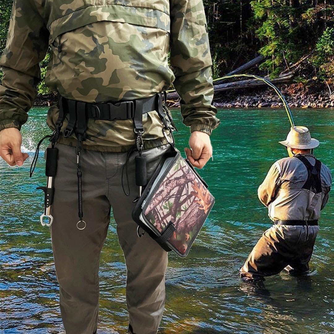 Adakunon surf fishing belt fits 31" to 58" waist, with 1.5"/38mm main webbing, 1.0"/25mm accessory webbing, 20cm rod holder (max 5cm opening). Made of heavy-duty tear-resistant nylon webbing, high-strength ABS rod holder, reinforced 360° swivel hooks and D-rings, durable for harsh saltwater and outdoor conditions. Quick-release buckle for fast on/off, adjustable length for perfect fit. The integrated rod holder frees your hands while wading, 2 heavy swivel hooks, 2 standard swivel hooks and 2 D-rings for hanging pliers, forceps, scissors, gloves, towels and other fishing tools. Water-resistant, easy to clean, no rust. Perfect for surf fishing, sea fishing, kayak, canoeing, wading, hiking, camping, tactical outdoor activities. Tactical black design with modular structure, matches all your fishing outfits, a must-have for fishing enthusiasts.