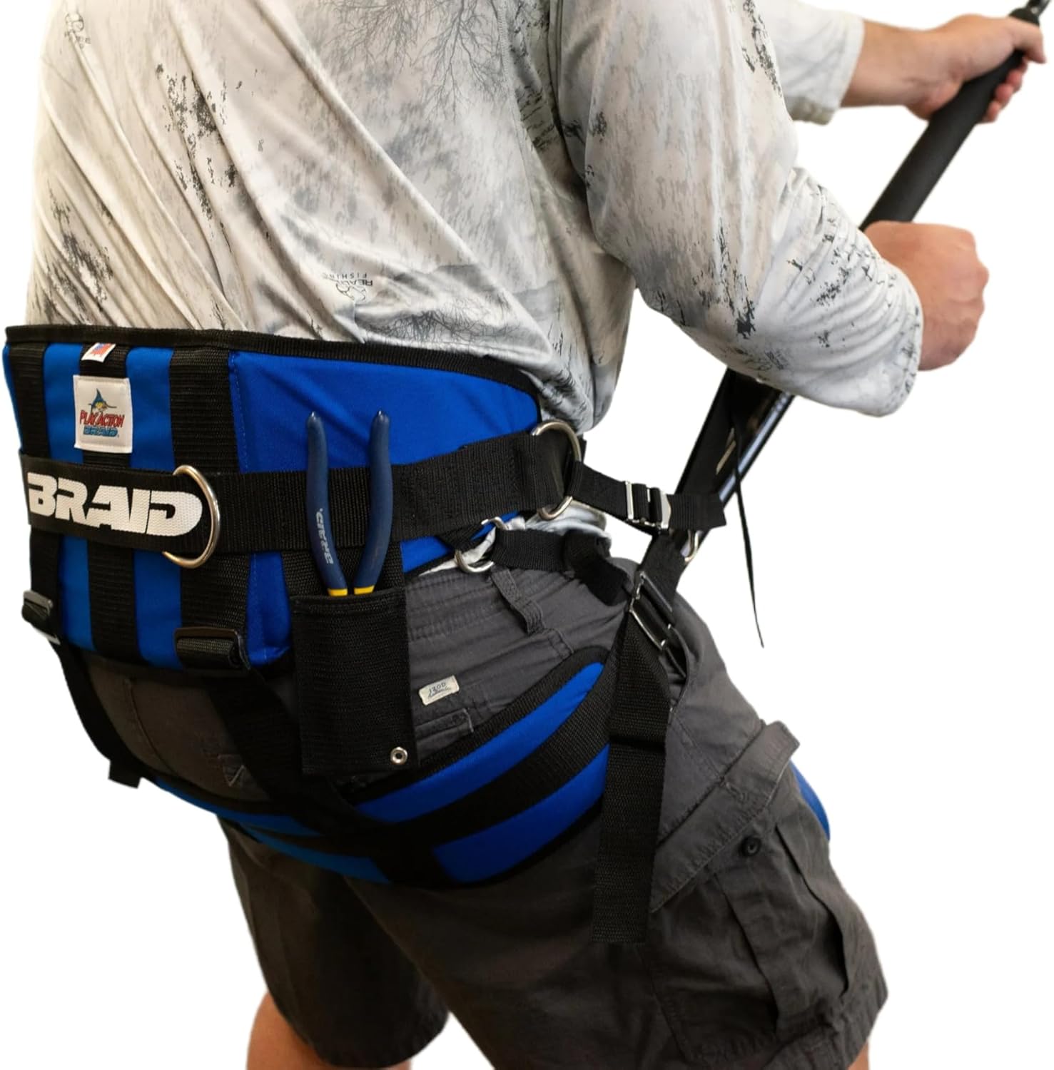 The ultimate in stand-up gear for huge fish and 80 to 130 pound tackle. Made in the USA of the finest materials available today, the Power Play gives back support and bucket configuration to win the tough stand-up battles. Fully Adjustable for Every Size and Shape of Angler for the Ultimate Comfort. Full range adjustable side straps and stainless steel rings are just part of the Braid Products advantage. Designed to put the maximum amount of pressure on giant fish. Optional drop straps increase leverage. An excellent combination with POWER PLAY ROD BELT or BRUTE BUSTER BELT.
