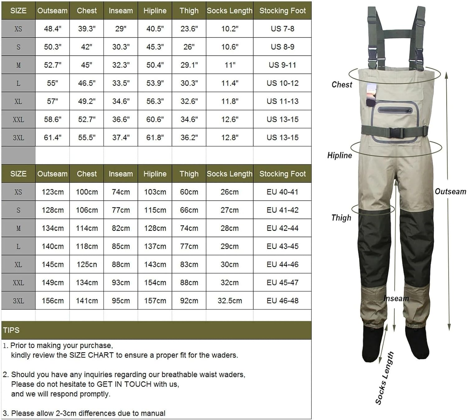 Suspenders: : Adjustablebooties thickness : 4mmWeight : 1100g-1500gSize : XS,S,M,L,XL,2XL,3XLWaterproof Index : 15000Breathable Index : 3000Feature : Waterproof BreathbleSuitable : Fishing Hunting