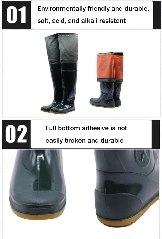 Product DescriptionWaterproof and durable hip waders are made of PVC fabric and Oxford soles. The wading shoes are light, comfortable, flexible, oil resistant, sweat absorbent, easy to wear and take off and move freely. The adjustable buckle design prevents excessive movement from causing leg pants to slide down. Suitable for men/women's boots in fishing, hunting, agriculture, mining, car washing, and many other daily chaotic situations Product name: Hip wader Product material: PVC+Oxford sole Applicable occasions: fishing, aquaculture, transplanting seedlings, washing cars, cleaning rivers, aquatic industry, etc. Package includes: Hip waders × 1 Size 35 / suitability foot length 22.1-22.5. (cm) Size 36 / suitability foot length 22.6-23.0 (cm) Size 37 / suitability foot length 23.1-23.5 (cm) Size 38 / suitability foot length 23.6 24.0 (cm) Size 39 / suitability foot length 24.1-24.5 (cm) Size 40 / suitability foot length 24.6-25.0 (cm) Size 41 / suitability foot length 25.1-25.5 (cm) Size 42 / suitability foot length 25.6-26.0 (cm) Size 43 / suitability foot length 26.1-26.5 (cm) Size 44 / suitability foot length 26.6-27.0 (cm) Size 45 / suitability foot length 27.1-27.5 (cm) Size 46 / suitability foot length 27.6-28.0 (cm) Size 47 / suitability foot length 28.1-28.5 (cm) Suggestion: 1. The size is manually measured, and the measurement error may be within 2-3cm, which is a normal phenomenon 2. Due to different shooting lighting and display methods, there may be slight color differences. Please refer to the product Notice: → If you need more styles, please click our brand to find your favorite styles. → If you have any questions before or after purchase, please feel free to contact us. We will help you to solve problems within 24 hours.